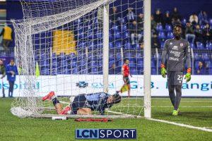 All’85’ clamoroso buco difensivo della difesa bluceleste e Juanito fila in porta, ma per fortuna cerca un difficile pallonetto su Furlan in uscita: traversa piena. Risponde il Lecco con Frigerio a calciare dal limite, Sibi risponde. Ultimo brivido in recupero col bel tiro di Mendoza, alto. Finisce 1-1 una brutta partita. Da capire se sarà un passo falso oppure un passo indietro.