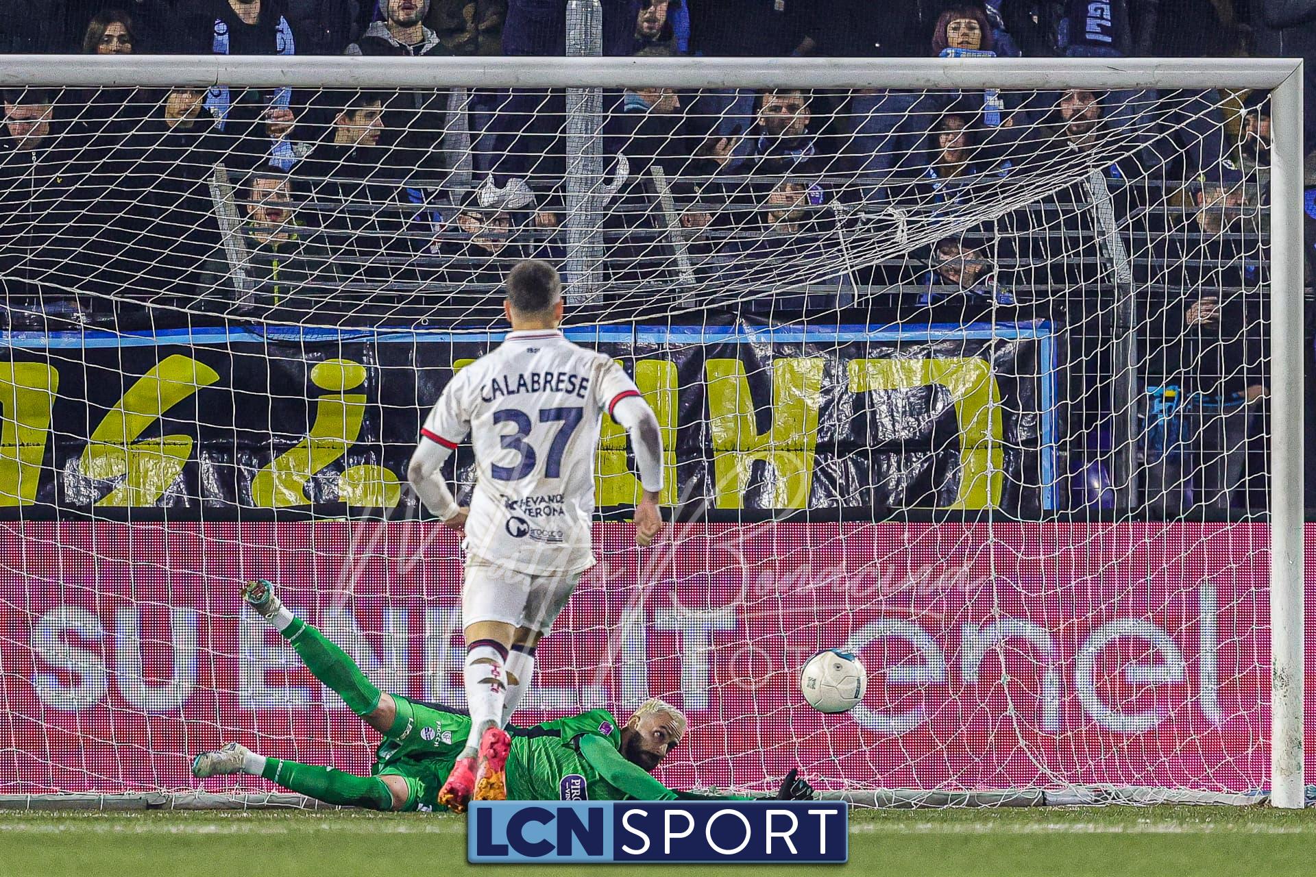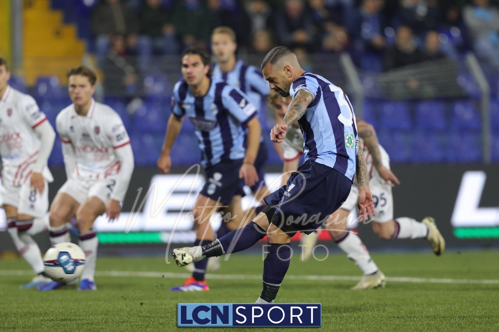 Bellissima azione del Lecco dopo 2′ sull’asse Ionita–Tordini–Galeandro: il numero 11 conclude male, ma Sibi non è sicuro e para con difficoltà. Al 5′ Galeandro calcia ancora senza grande forza ma angolato, Sibi la devia a lato, Galli si fionda sul pallone e Daffara lo stende: l’arbitro Esposito non ha dubbi e indica il dischetto. Lepore spiazza il portiere con un tiro a mezza altezza.