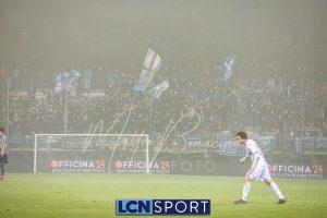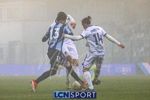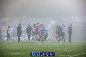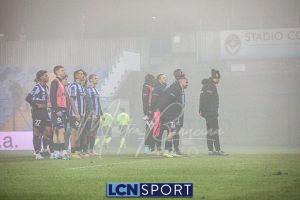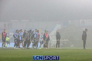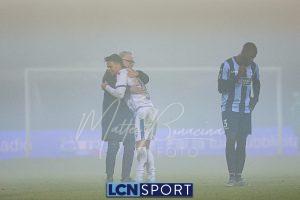 Dentro Tordini e Rocco al 71′, il Lecco passa al 4-2-3-1 per provare la rimonta. Ma, complice la nebbia e la confusione, succede veramente poco con il ritmo del match che crolla. La formazione di mister Volpe tiene molto palla e la fa girare, con i soliti problemi nel creare situazioni d’attacco pericolose. All’87’ Battistini si fa saltare da Stuckler, che entra in area e calcia bene, Furlan respinge. Poco dopo tiro alle stelle di Tordini. Finisce con la squadra sotto la curva di supporter blucelesti, ricoperta dai (giusti) fischi.