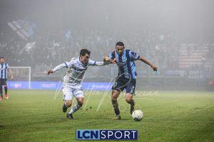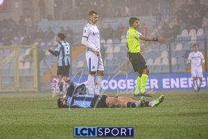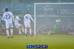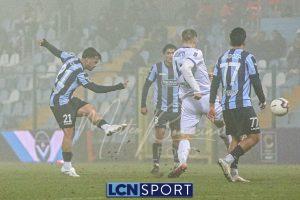 Il Lecco reagisce: al 28′ Kritta scende a sinistra e mette un bel cross, insidioso, sul primo palo sul quale Frigerio è bravissimo a inserirsi in spaccata e centrare il palo. Il Lecco non demerita e costruisce gioco, con Mendoza e Di Gesù ispirati. Poco, però, per creare occasioni da gol.
