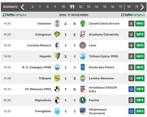 La classifica e i risultati del girone B di Eccellenza lombarda