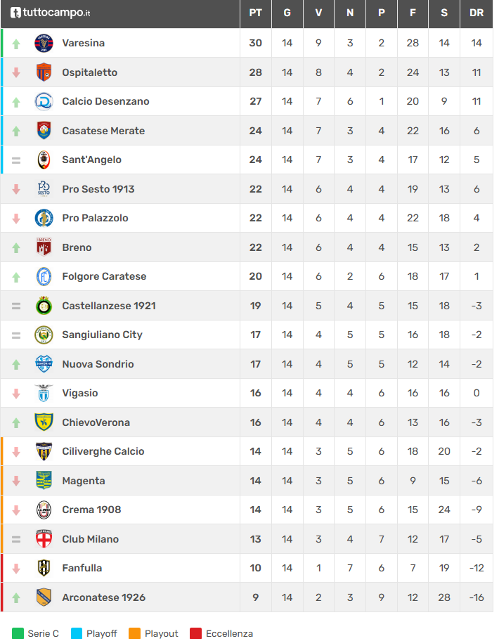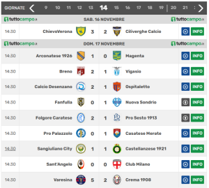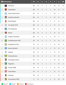 Tabellino Pro Palazzolo – Casatese Merate 0 – 1