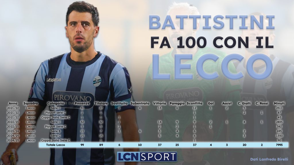 È tornato a Lecco dopo la negativa esperienza di Crotone e si è ripreso il suo posto al centro della difesa. Nel corso della stagione 2024/2025 nessun altro ha giocato ogni singolo minuto. Per Matteo Battistini quella in corso è l’annata della rinascita a livello personale, nonostante un rendimento del collettivo a singhiozzo. Il classe 1994 ha fatto rientro al nord Italia formalmente lo scorso 1° luglio e sin da subito è stata chiara l’intenzione di mister Francesco Baldini nei confronti del suo corregionale: tornare a renderlo un titolare, con Marrone e Celjak che si sono alternati al suo fianco anche a causa dei problemi fisici che li hanno rispettivamente colpiti in momenti diversi. Con l’arrivo di mister Gennaro Volpe la solfa non è cambiata e il suo partner al centro della retroguardia è cambiato a Gorgonzola, terra di debutto dal primo minuto per Jean-Claude Billong dopo i due spezzoni disputati in precedenza. Per Battistini è in vista anche il prestigioso traguardo delle cento presenze in maglia bluceleste, come raccolto da Lanfredo Birelli: nonostante un inizio di settimana in palestra per gestire un’infiammazione che gli dà noia da qualche tempo, con la capolista Padova l’occasione dovrebbe essere quella giusta per tagliarlo.