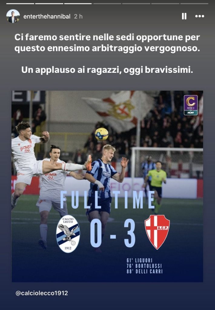 «Difficile non parlare di un arbitraggio imbarazzante. Chiediamo rispetto per quello che facciamo: sputiamo sangue tutti i giorni, vedere una prestazione del genere per un’ora contro una squadra che ha fatto 15 vittorie in 17 partite… L’arbitro ha spostato gli equilibri della partita: abbiamo preso gol su un errore tecnico sulla battuta della punizione, per quanto siamo stati anche ingenui in quella situazione. La squadra ha fatto quello che ho chiesto: grande atteggiamento e mentalità, pressing alto, ma anche oggi gli episodi ci hanno penalizzato. Di cosa stiamo a parlare? 0-3 in casa e il risultato rimane, ma oggi il Lecco non ha sbagliato. Siamo poco fortunati tra infortuni, squalifiche… Ci lecchiamo le ferite».