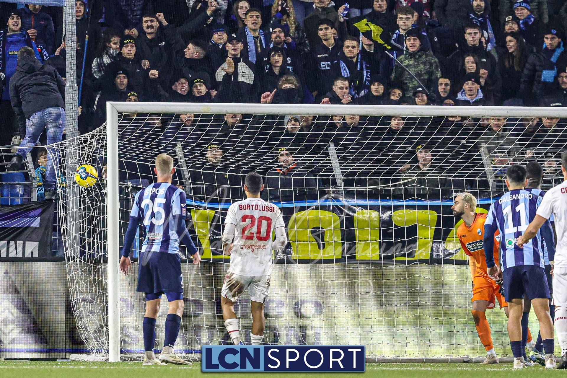 La palla per riaprire la partita il Lecco l’ha all’80’ con il colpo di testa-pallonetto di Sipos su cui Fortin spolvera l’incrocio con un miracolo. Un minuto più tardi Galeandro prende palla dal limite dell’area e calcia fortissimo, palo pieno, sul tap-in Frigerio sbaglia clamorosamente mandando in Curva Sud un gol già fatto.