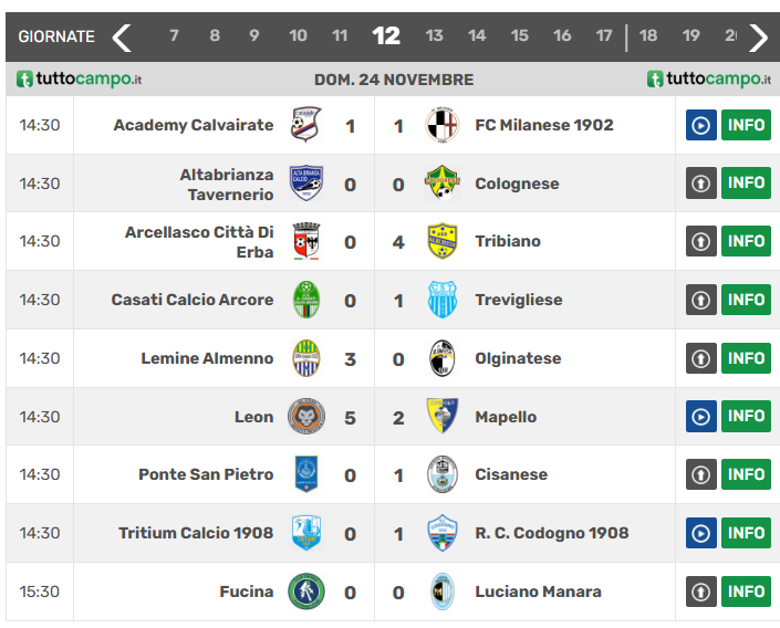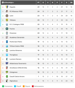 Di seguito vengono presentate la classifica e gli ultimi esiti del girone B di Eccellenza lombarda: