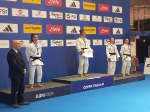 Ottimo fine settimana per Martina Mariani. La giovane judoka del Judo Club Samurai Lecco ha ottenuto il terzo posto nella cornice del PalaPellicone di Ostia per la Coppa Italia A1. L’atleta lecchese, portabandiera dell’assaciazione lecchese, è scesa sul tatami nelle giornate di sabato e domenica, gareggiando nella categoria femminile -52kg: la medaglia di bronzo è arrivata al termine di una stupenda gara durata combattimenti: il primo è stato vinto come sorteggio, il secondo è durato lo spazio di soli tre minuti e l’ha vista conquistare la vittoria con tecniche in piedi per poi concludere a terra, il terzo si è allungato per oltre 7 minuti e ha fatto scendere Martinta molto arrabbiata a causa di una superiorità negata dalla squadra arbitrale. La combattiva lecchese ha poi primeggiato nella finale per il terzo posto sbarazzandosi dell’avversaria Beatrice Cialini in meno di un minuto.