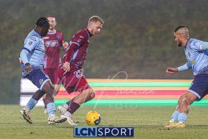 Unico lampo del Lecco al 31′ con la conclusione violenta di Frigerio dal limite dell’area, di poco sopra la traversa, ma Marietta è in posizione. Un minuto più tardi clamorosa doppia chance per i padroni di casa: Zoma scende a sinistra e mette in mezzo, Astrologo di testa in tuffo colpisce il palo; sul tap-in Mustacchio deve solo calciare in porta ma spara alle stelle.