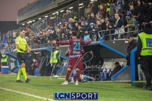Il Lecco, inevitabilmente, prende campo. Al 67′ la prima conclusione in porta dei blucelesti con Lepore dai venti metri, Marietta smanaccia sopra la traversa. Dentro Rocco per uno spento Galeandro e Mendoza per Louakima. Altra situazione di “lusso” per il Lecco al 74′: cross da sinistra, leggera spizzata aerea di Astrologo e palla che rimbalza davanti a Furlan colpendo il palo pieno. La spinta per la superiorità numerica del Lecco è durata pochissimo…