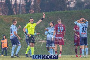 Al 61′ l’episodio che può cambiare la partita: Parlati entra a gamba tesa su Dore e si prende un sacrosanto secondo giallo. Albinoleffe, già in calo fisico, in dieci uomini.