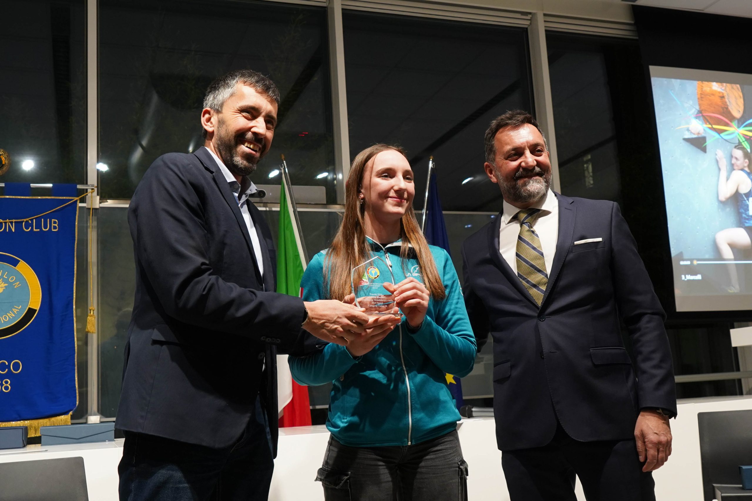 Adriana Baruffini, nel suo ruolo di presidente, ha invece ritirato il premio assegnato al Club Alpino Italiano di Lecco che ha compiuto quest’anno ben 150 di storia. È toccato poi alla più giovane premiata, Alice Marcelli, 15 anni di Mandello, campionessa del mondo Under 16 di arrampicata sportiva “Speed”, promessa del Gruppo Ragni di Lecco. Non presente in sala Michele Bonacina, due volte campione del Mondo di triathlon e duathlon cross perché impegnato in un allenamento in Cina, supportato però da un video girato prima di partire. Per lui ha ritirato il premio papà Paolo.