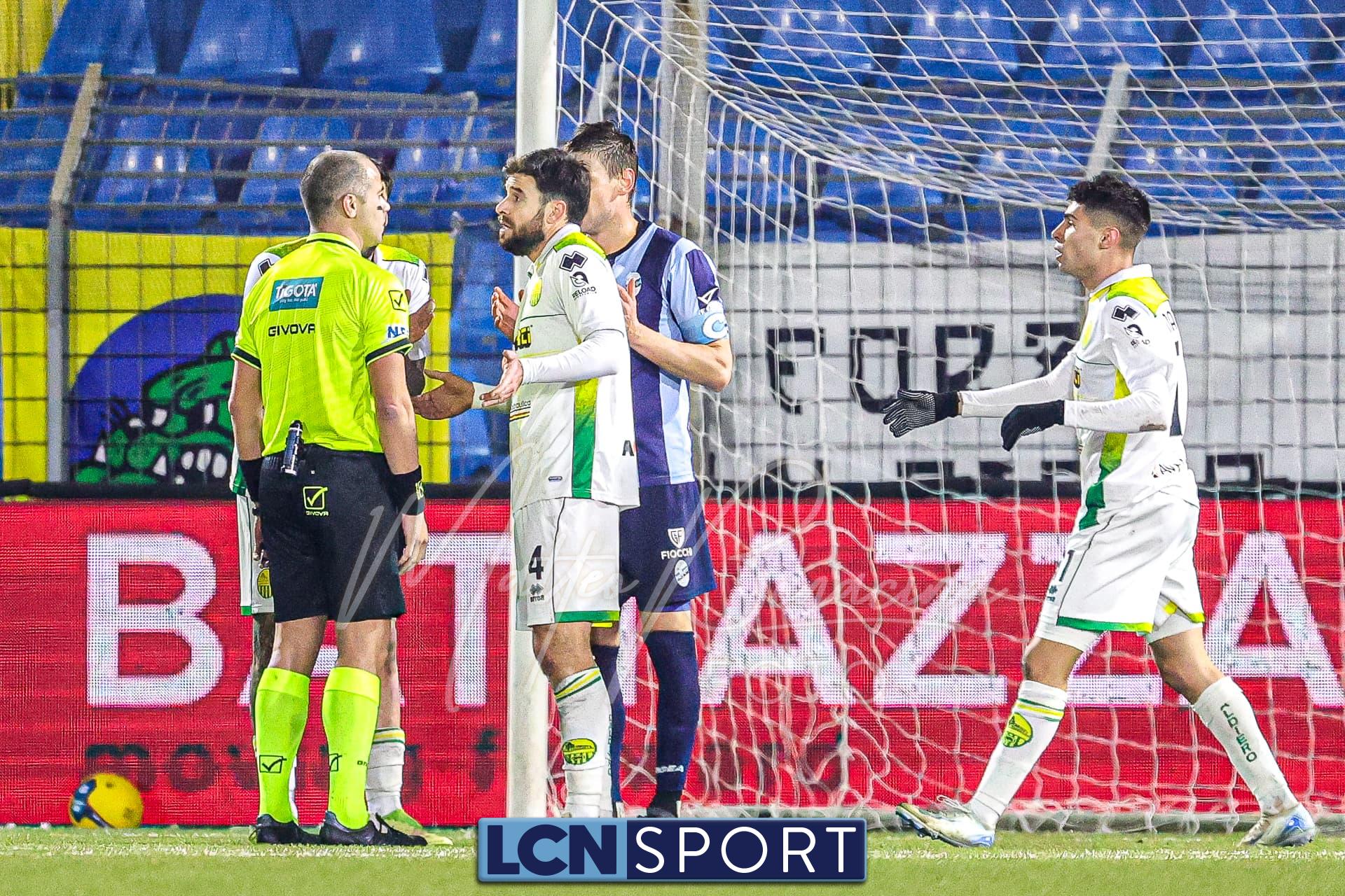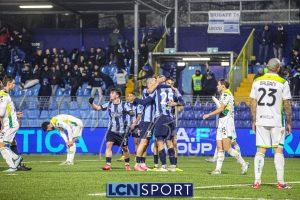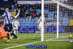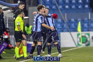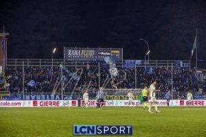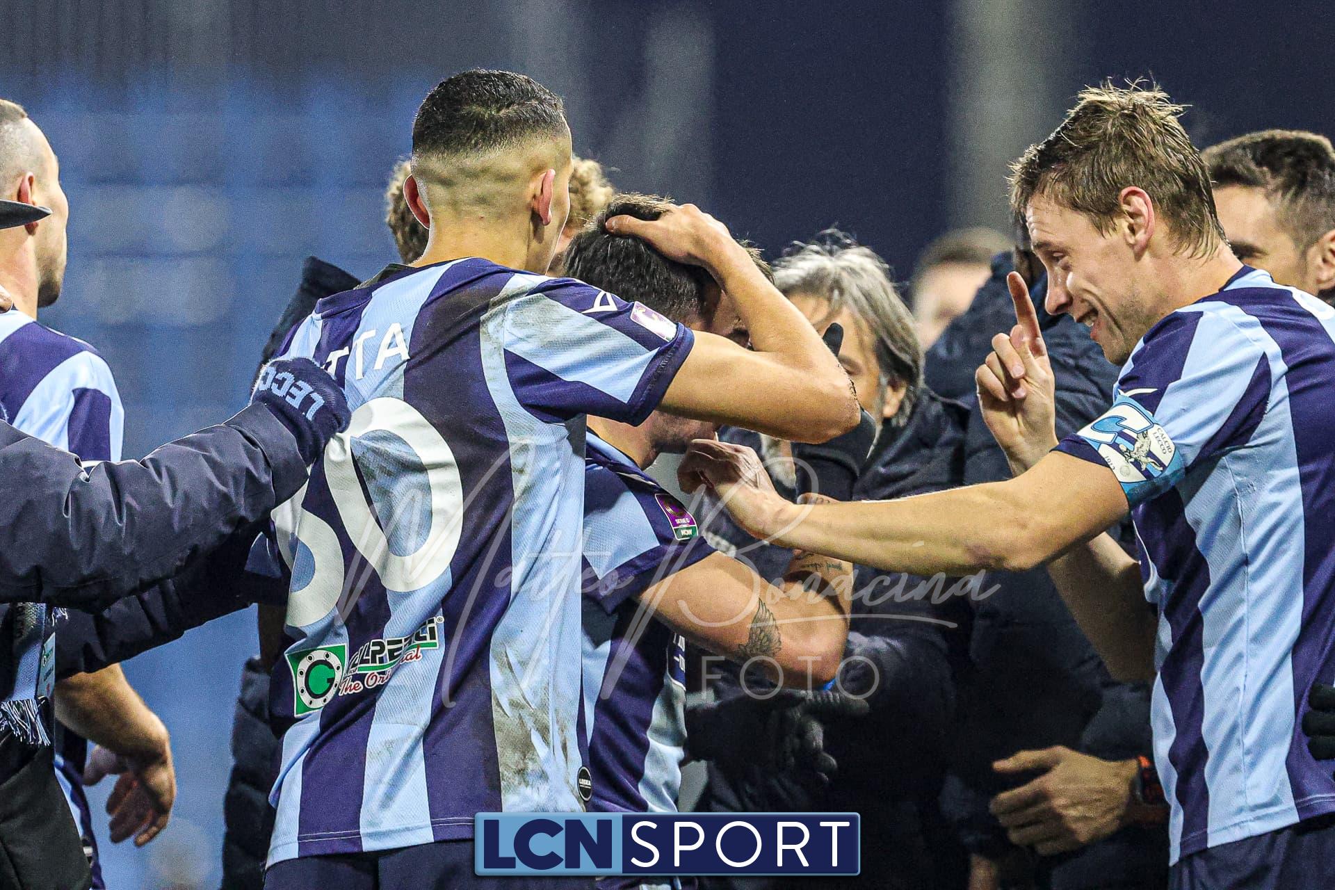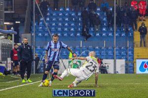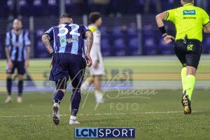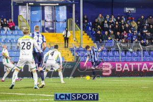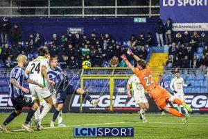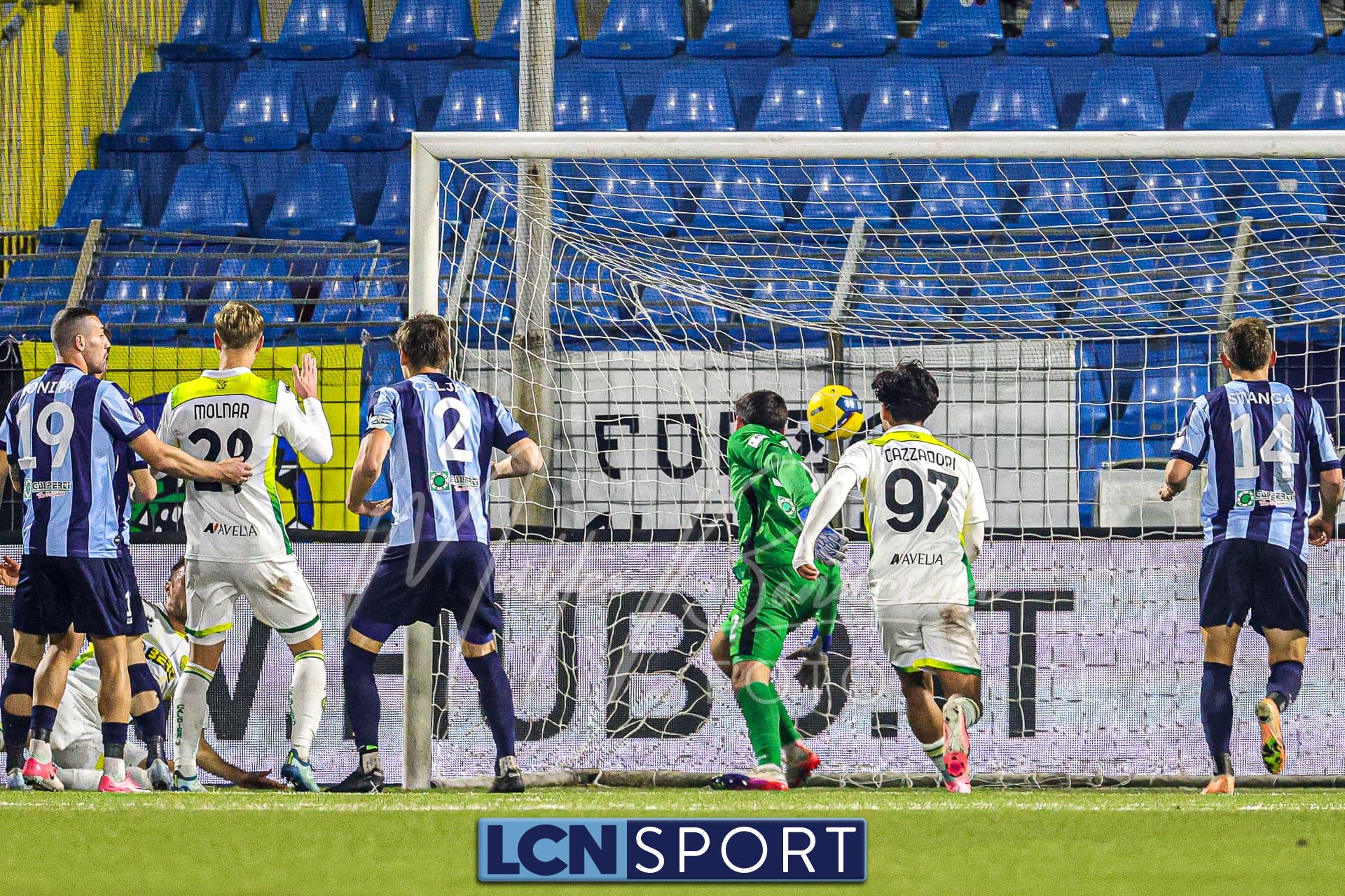 Al 64′, dal nulla e senza particolari meriti, il Lecco passa in vantaggio: cross di Kritta forte e teso da sinistra, Kuqi non la tiene fantozzianamente e la fa carambolare su Sipos, a pochi centimetri da lui, per il 2-1 dei blucelesti.