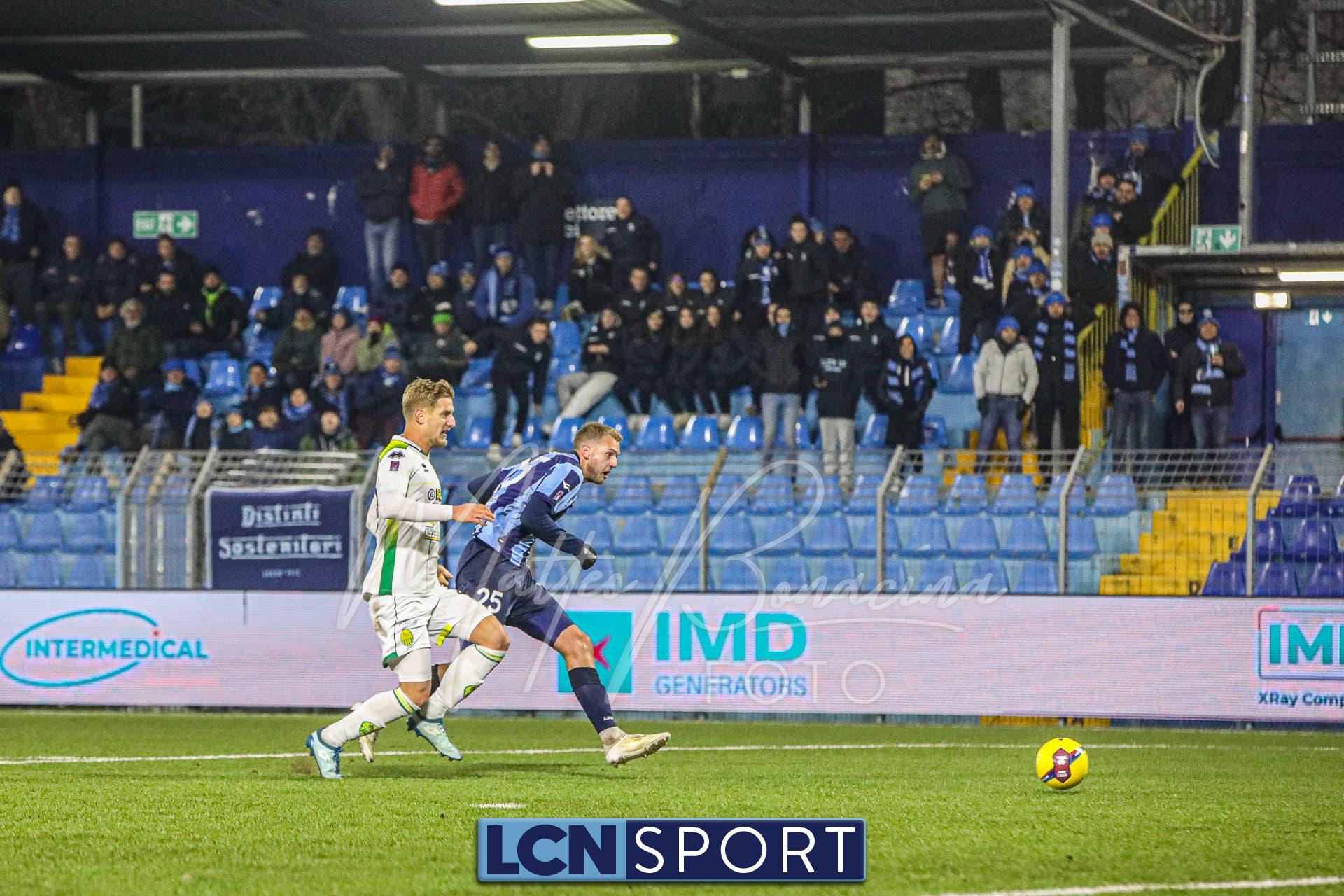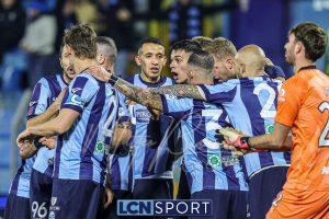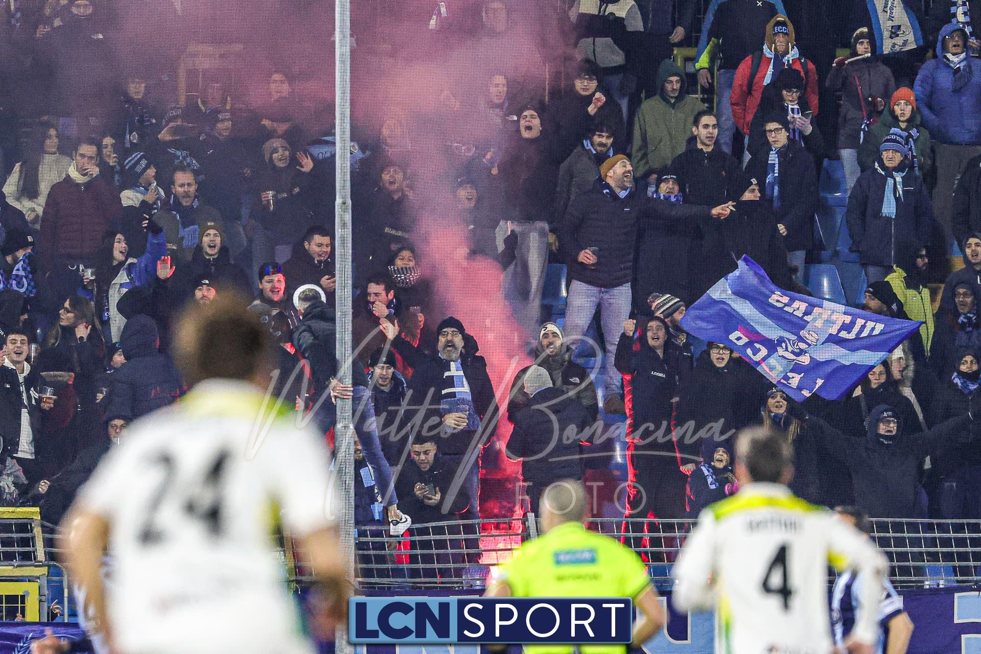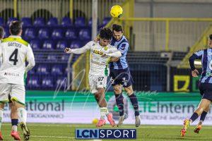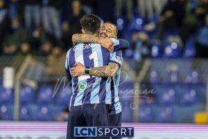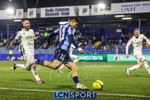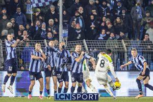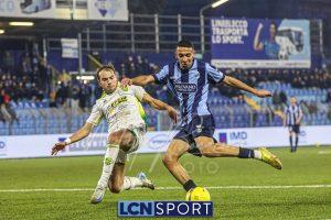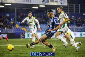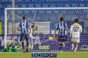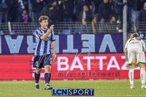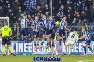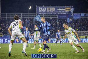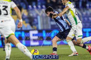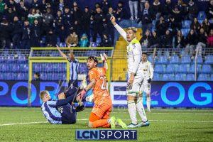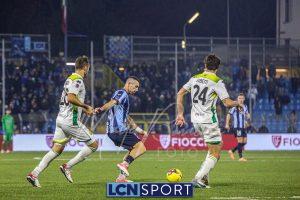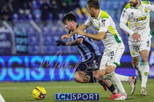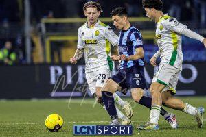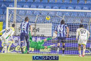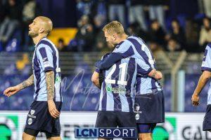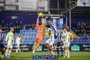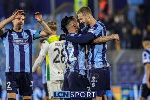 Al 64′, dal nulla e senza particolari meriti, il Lecco passa in vantaggio: cross di Kritta forte e teso da sinistra, Kuqi non la tiene fantozzianamente e la fa carambolare su Sipos, a pochi centimetri da lui, per il 2-1 dei blucelesti.