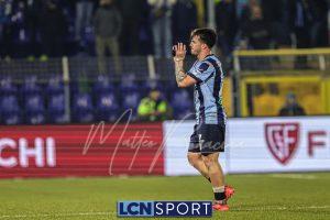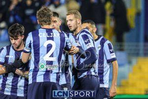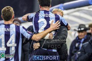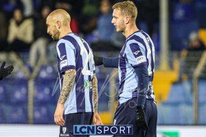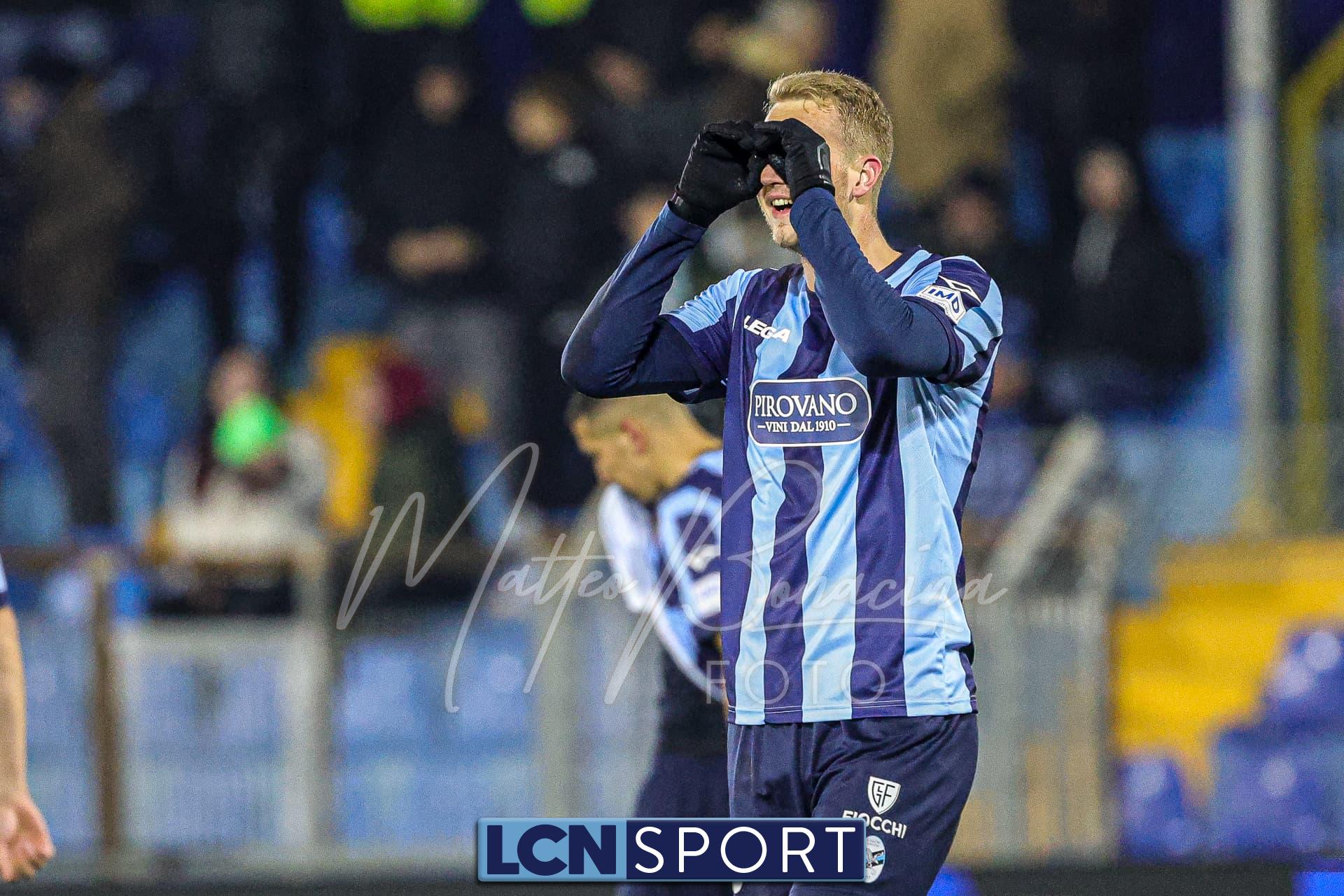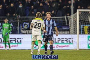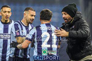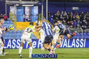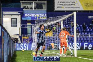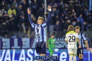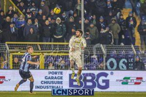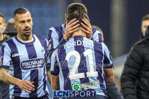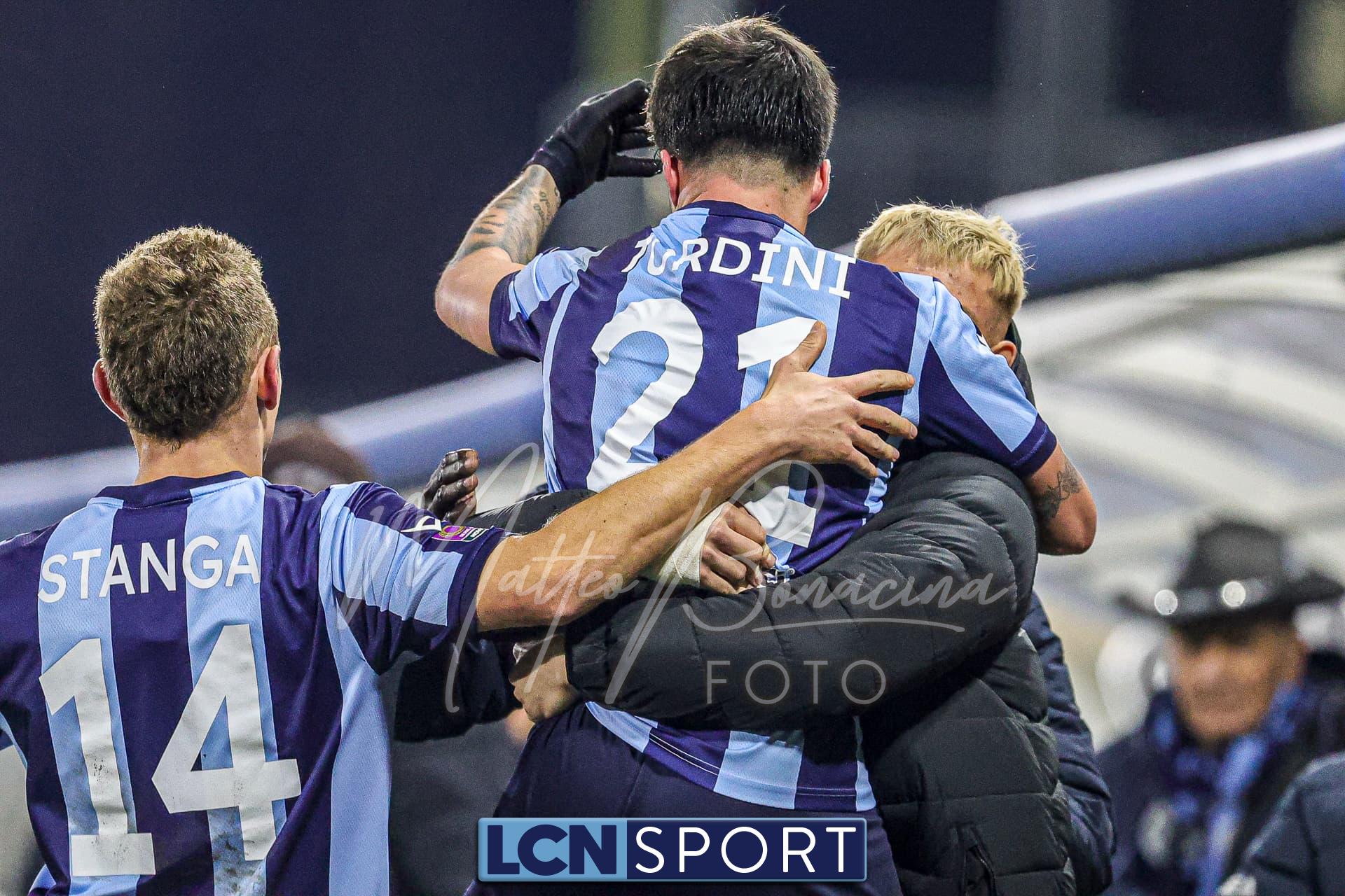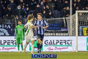 Il gol del Lecco quasi un po’ a sorpresa al 21′: bel cross di Celjak che segue l’azione a destra e gioca una seconda palla, nel cuore dell’area svetta benissimo Tordini, da centravanti puro, per insaccare alle spalle di Kuqi.