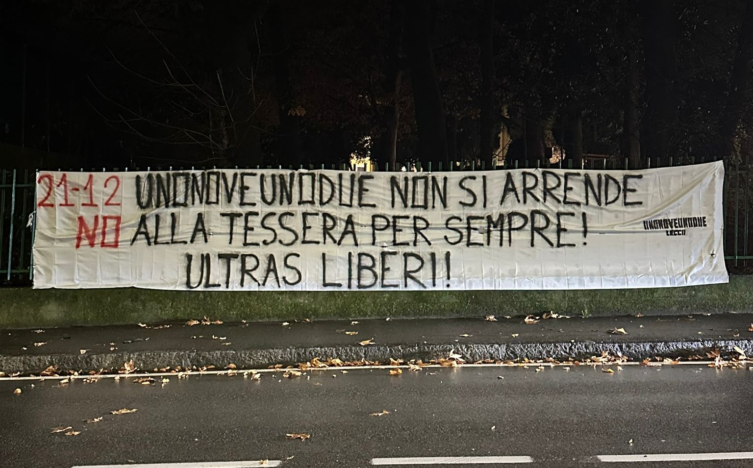 Nella notte tra giovedì 19 e venerdì 20 dicembre proprio il gruppo “UnoNoveUnoDue” ha appeso uno striscione all’esterno dello stadio “Rigamonti-Ceppi” recante la scritta: «21-12, UnoNoveUnoDue non si arrende. No alla tessera per sempre! Ultras Liberi!».