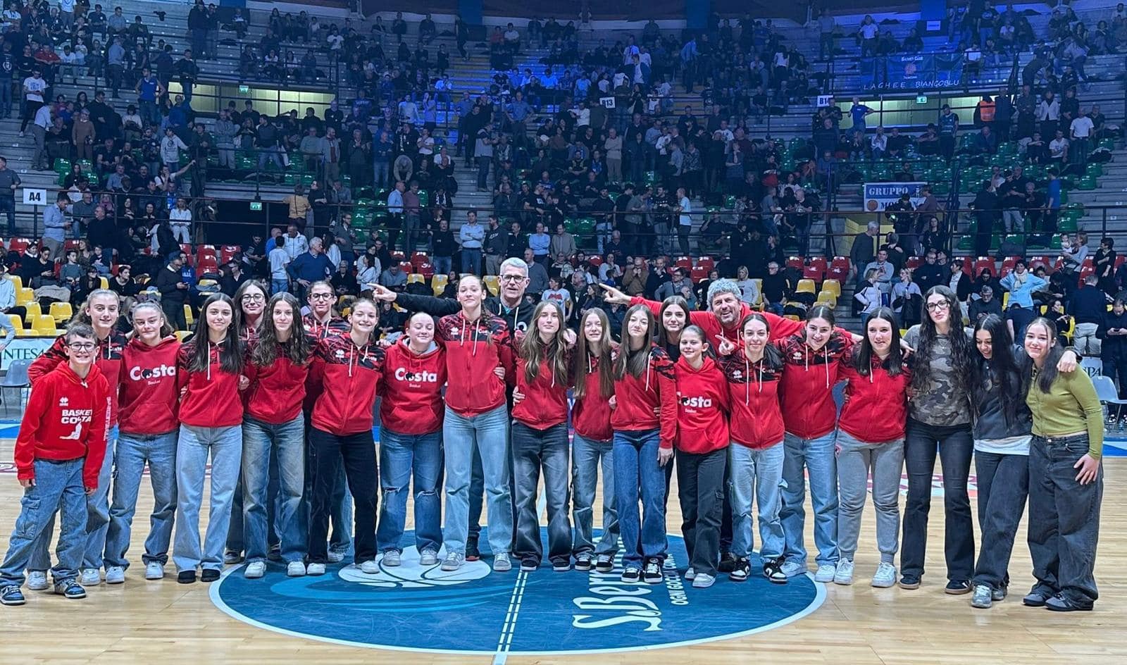 Bella esperienza per le giovani cestiste del Basket Costa che nella serata di domenica non solo hanno partecipato nel pubblico a un match di Serie A2 maschile, quello tra Pall. Cantù e Udine, ma sono state poi chiamate davanti al pubblico per prendersi un meritato applauso.