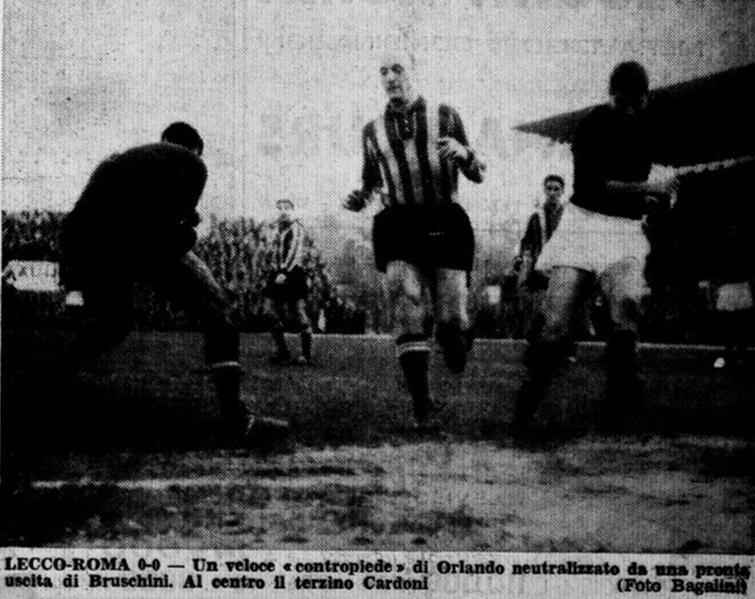 Sono quindicimila le anime che abbandonano le tavole imbandite per recarsi nel teatro calcistico comunale e applaudire l’impresa della piccola e operaia squadra bluceleste contro la gigantesca corazzata giallorossa, che arriva in riva al lago da capolista; tra i tantissimi spettatori c’è anche il “Gringo” Sergio Clerici, che da lì a poco inizia a scrivere la sua bellissima storia con la maglia del Lecco.