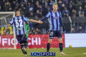 Al 74′ solito cross sull’asse Disanto-Fini da sinistra e Di Carmine insacca sotto la traversa, per fortuna dei blucelesti in fuorigioco, ma quante difficoltà su questo tipo di palla buttata in area. Poco dopo il neoentrato Anastasia calcia in diagonale, rasoterra, e non va lontano dal palo.