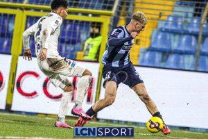 Brivido nell’area del Lecco nel minuto di recupero per l’azione insistita del Trento nel cuore dell’area di rigore: Peralta prova a mettere dentro, palla a Di Cosmo che calcia e viene murato da Polito in due tempi.