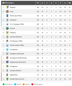 La classifica e i risultati del girone B di Eccellenza
