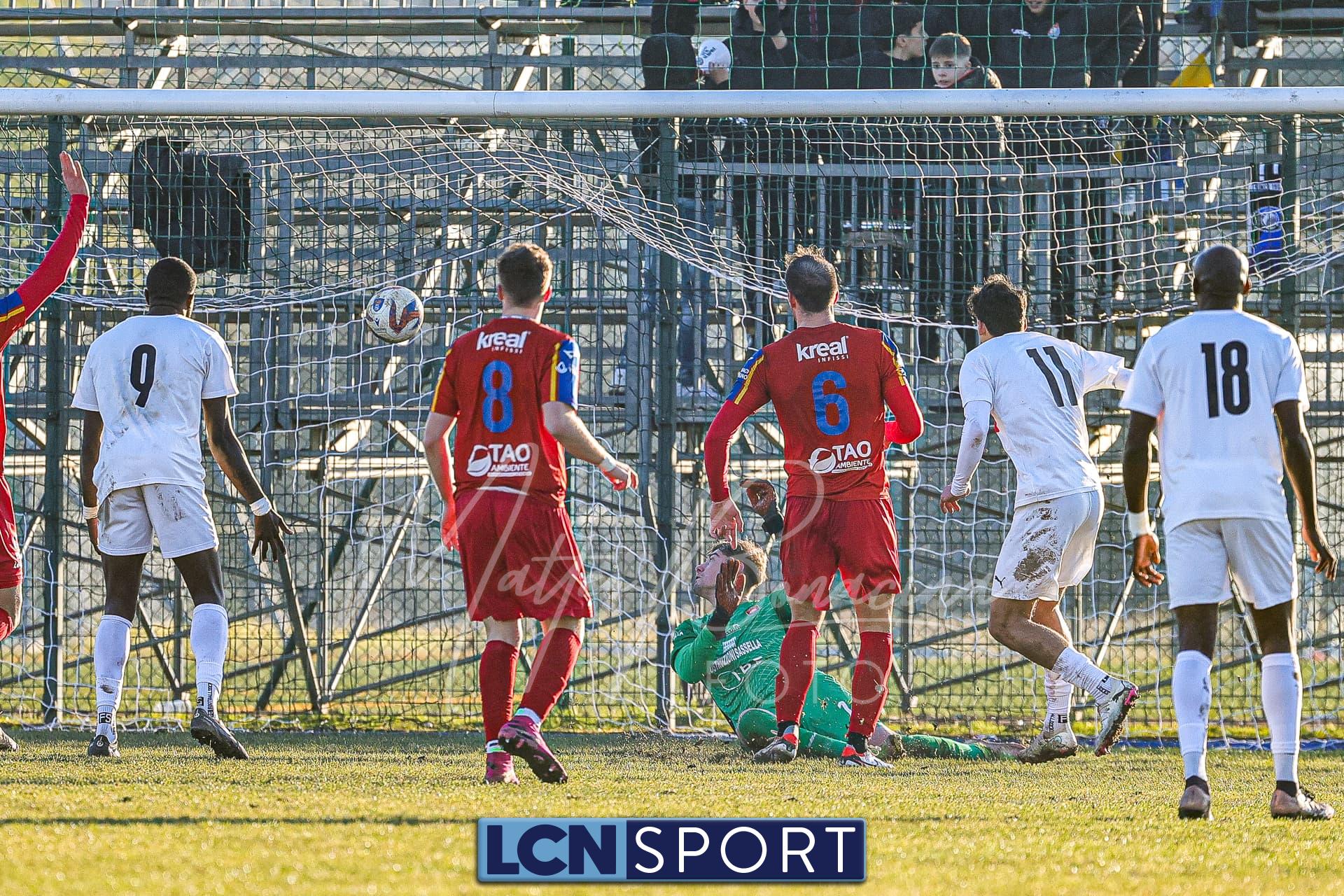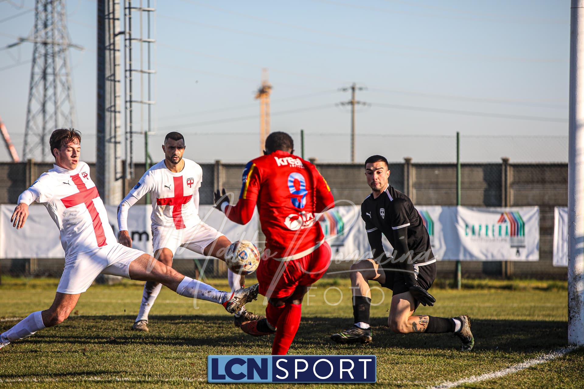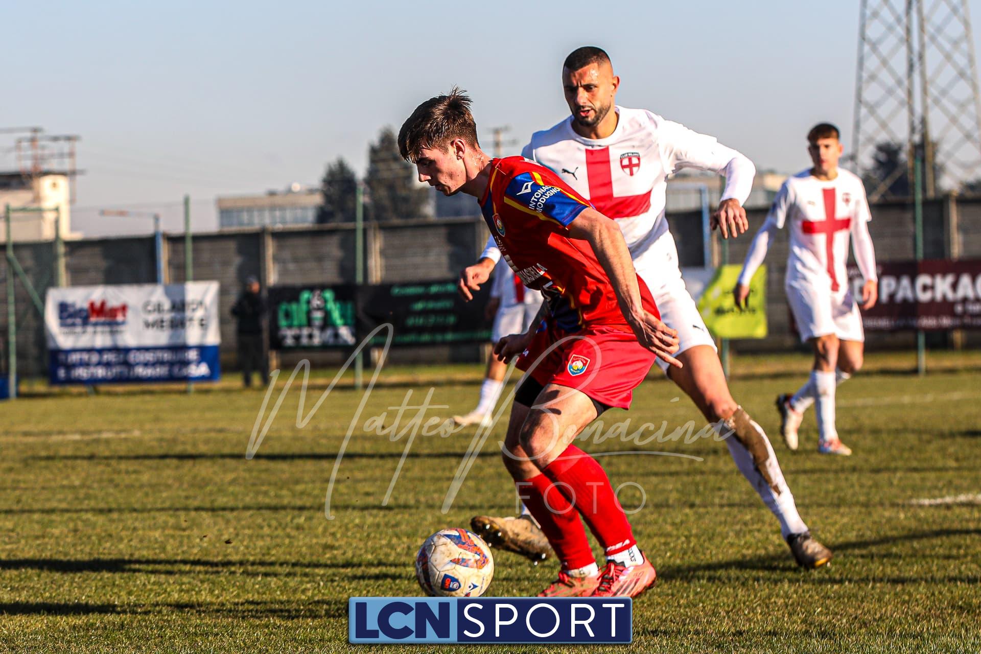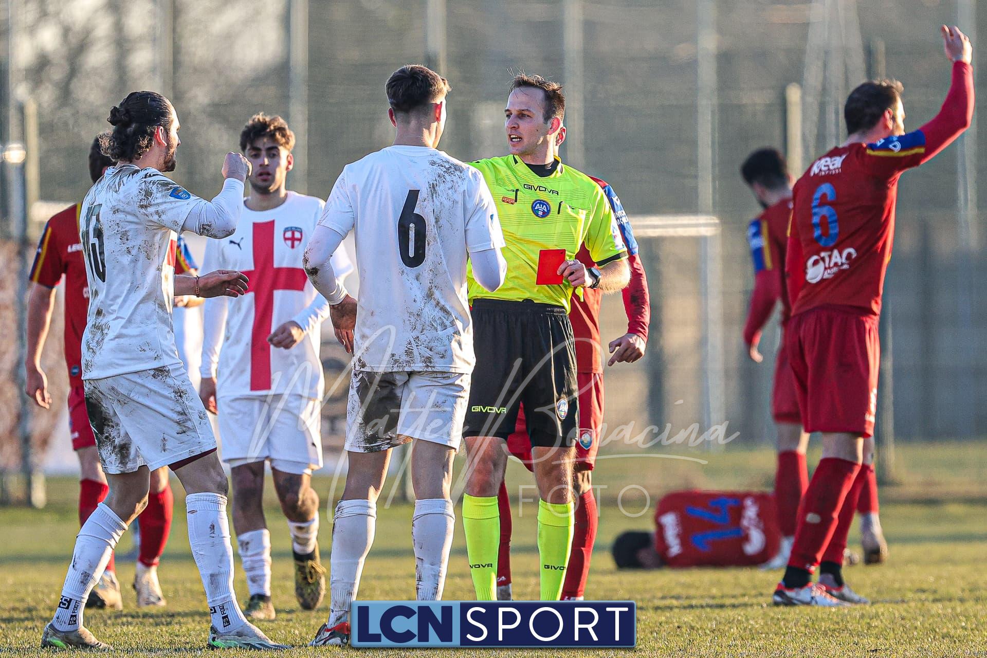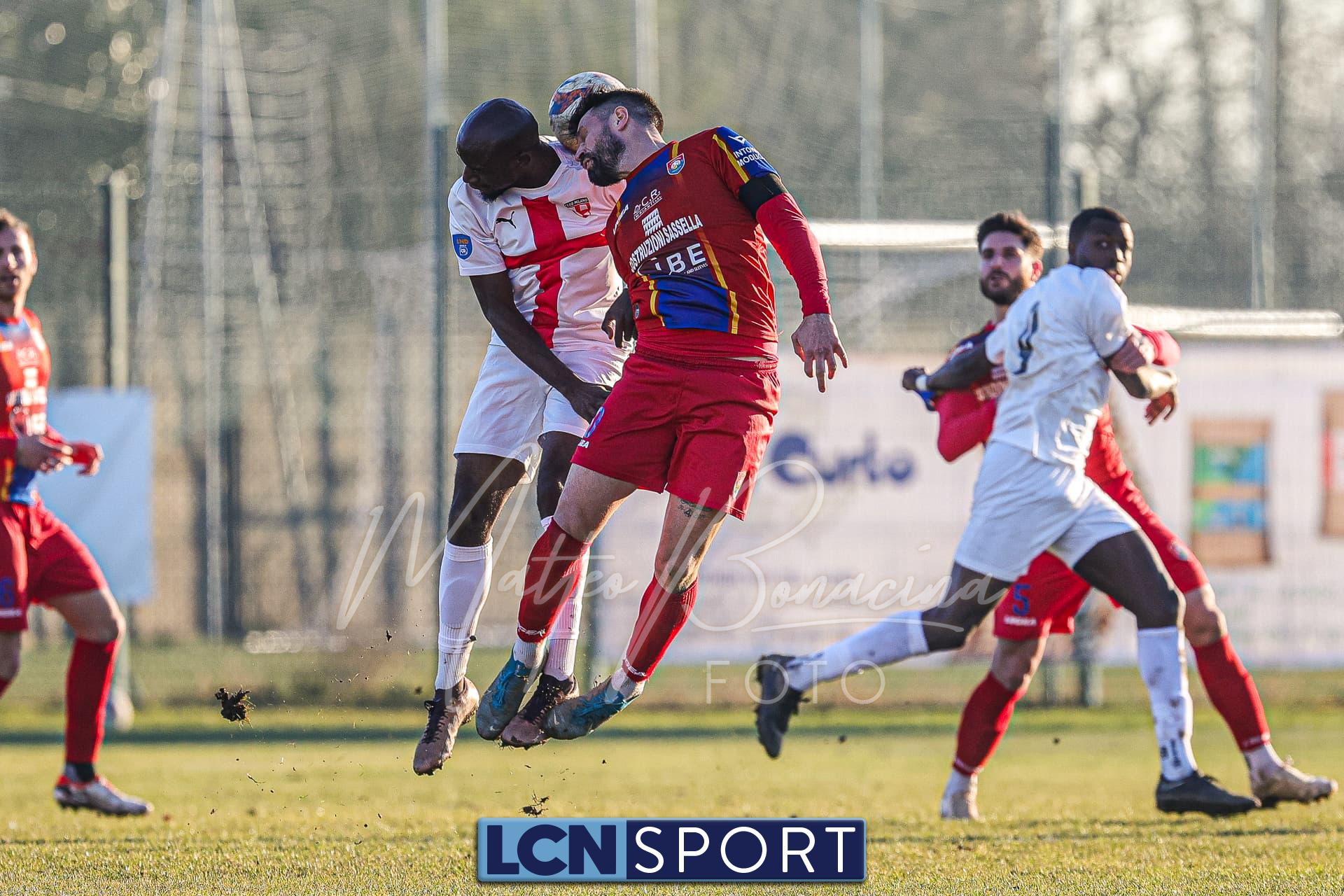 Gli uomini di mister Commisso non riescono a trovare il guizzo vincente per realizzare il bottino pieno tra le mura amiche contro l’ostico Club Milano. Campo in condizioni difficili e molle. Indisponibile lo squalificato Carannante per i padroni di casa per l’espulsione con la Folgore Caratese. I rossoblù si dimostrano insidiosi in più di un caso nei primi 45′ senza gonfiare la rete: Infatti Gningue può calciare a tu per tu con il portiere avversario e lo fa, ma l’ex Lecco Stucchi para il tentativo. Sempre la punta senegalese riceve palla da Corno sulla destra e si addentra in area in velocità con efficacia, ma il tiro defilato è alto. Atterrato sulla destra il 9 della formazione lecchese con la palla al piede e viene quindi concessa la punizione dalla destra per i Commisso boys: il colpo di testa di capitan Isella, che ha giocato un buon match, dagli sviluppi del piazzato finisce sopra la traversa. In seguito si fanno sentire anche i crociati: fallo di Corno che subisce l’ammonizione ed è punizione dalla sinistra per i biancorossi che però si perde sul fondo.