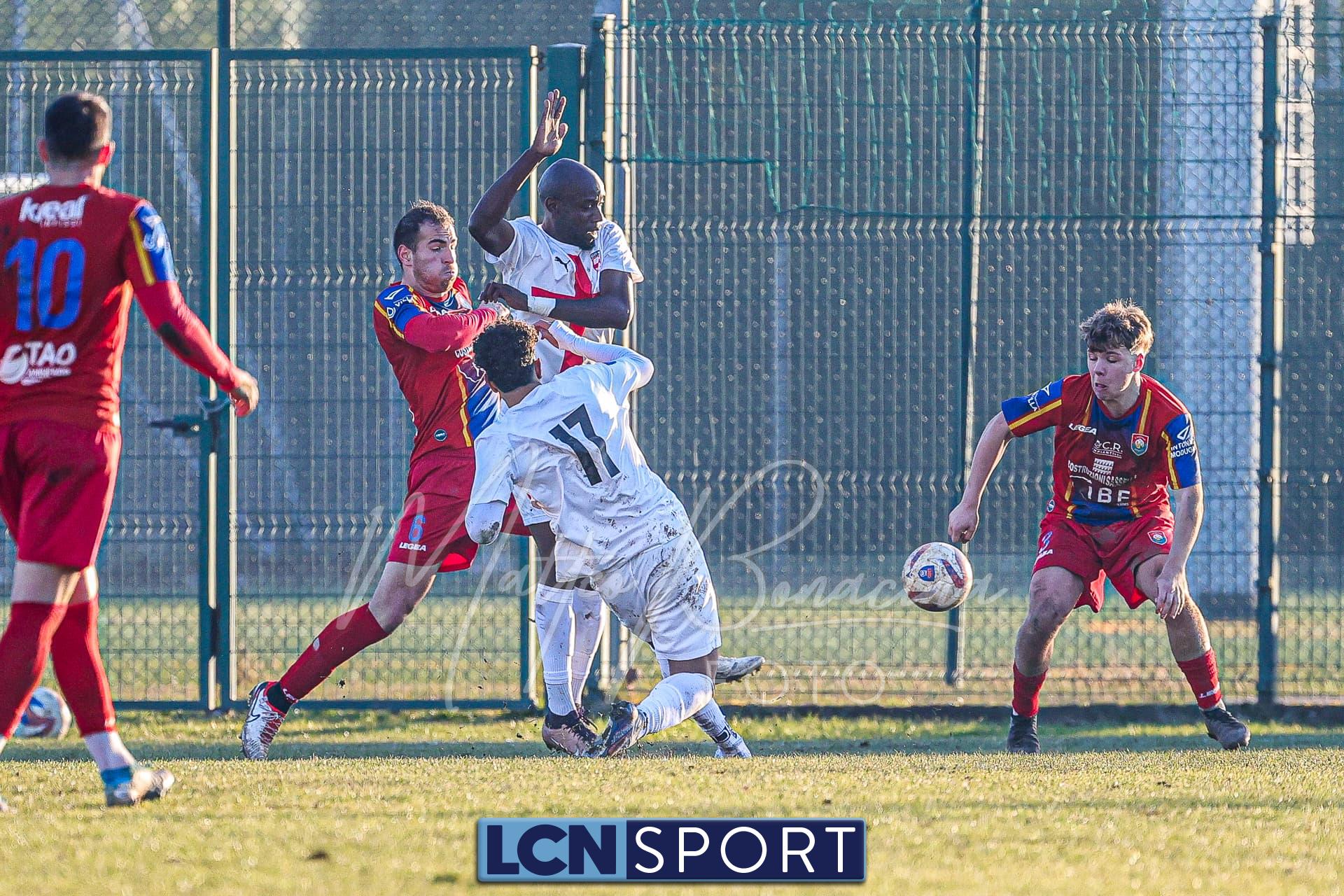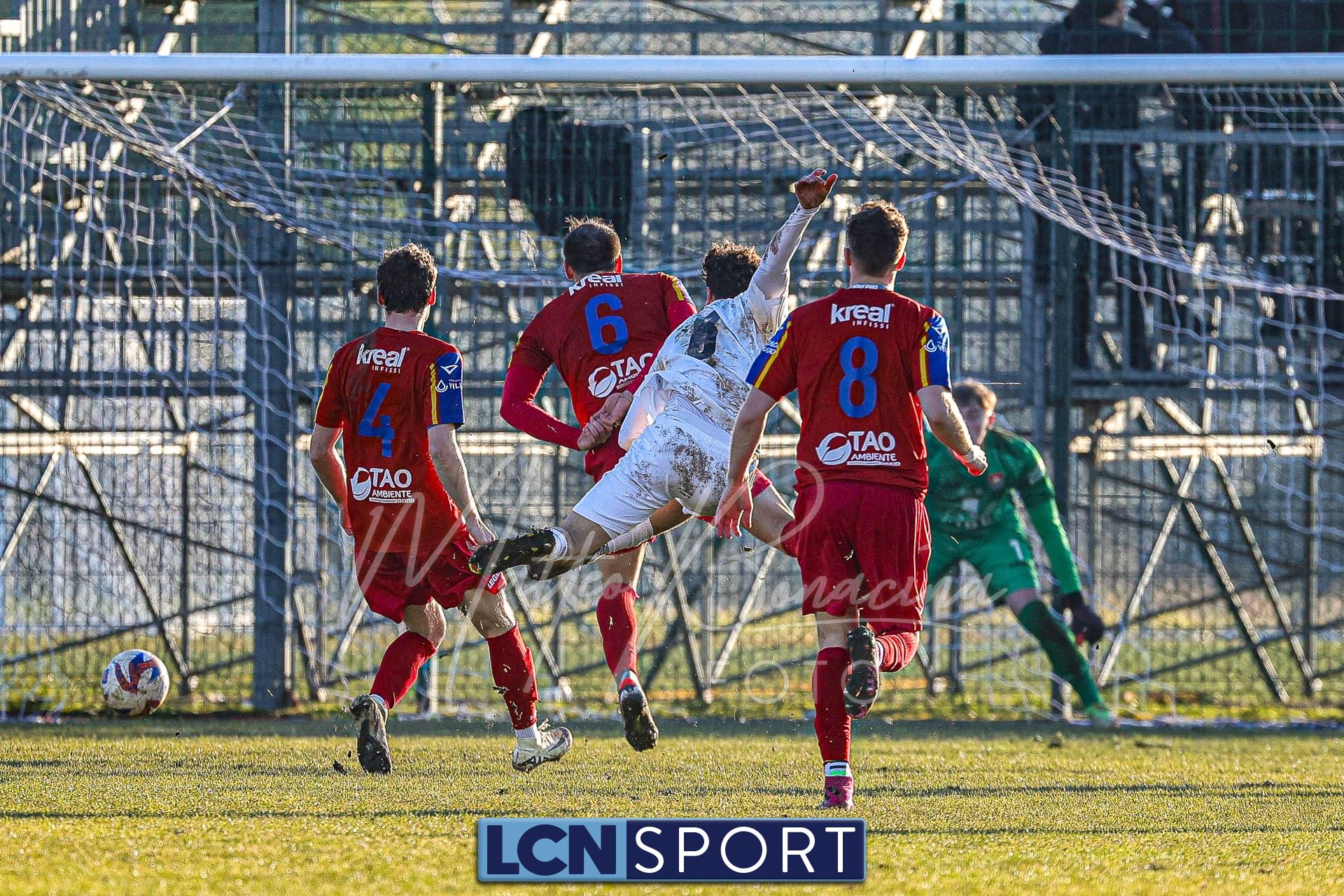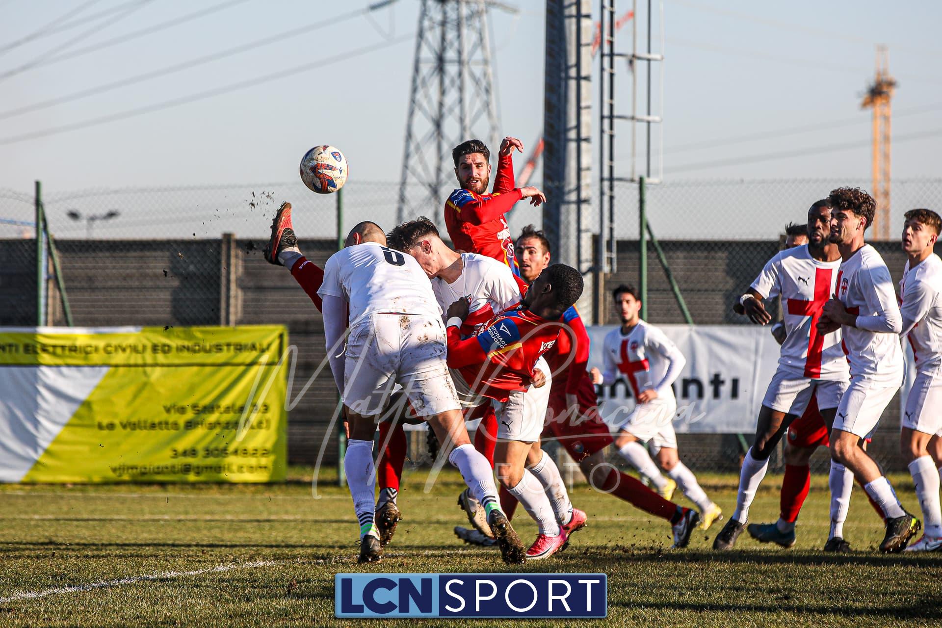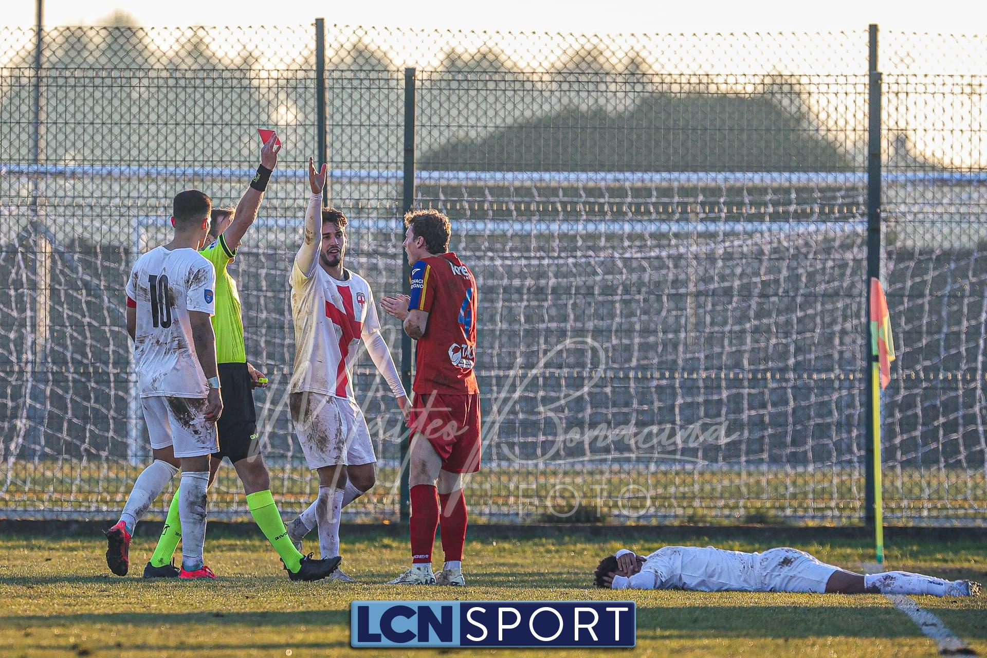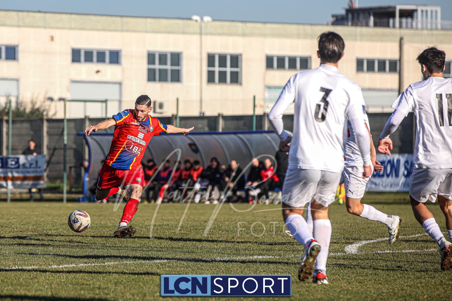 Gli uomini di mister Commisso non riescono a trovare il guizzo vincente per realizzare il bottino pieno tra le mura amiche contro l’ostico Club Milano. Campo in condizioni difficili e molle. Indisponibile lo squalificato Carannante per i padroni di casa per l’espulsione con la Folgore Caratese. I rossoblù si dimostrano insidiosi in più di un caso nei primi 45′ senza gonfiare la rete: Infatti Gningue può calciare a tu per tu con il portiere avversario e lo fa, ma l’ex Lecco Stucchi para il tentativo. Sempre la punta senegalese riceve palla da Corno sulla destra e si addentra in area in velocità con efficacia, ma il tiro defilato è alto. Atterrato sulla destra il 9 della formazione lecchese con la palla al piede e viene quindi concessa la punizione dalla destra per i Commisso boys: il colpo di testa di capitan Isella, che ha giocato un buon match, dagli sviluppi del piazzato finisce sopra la traversa. In seguito si fanno sentire anche i crociati: fallo di Corno che subisce l’ammonizione ed è punizione dalla sinistra per i biancorossi che però si perde sul fondo.