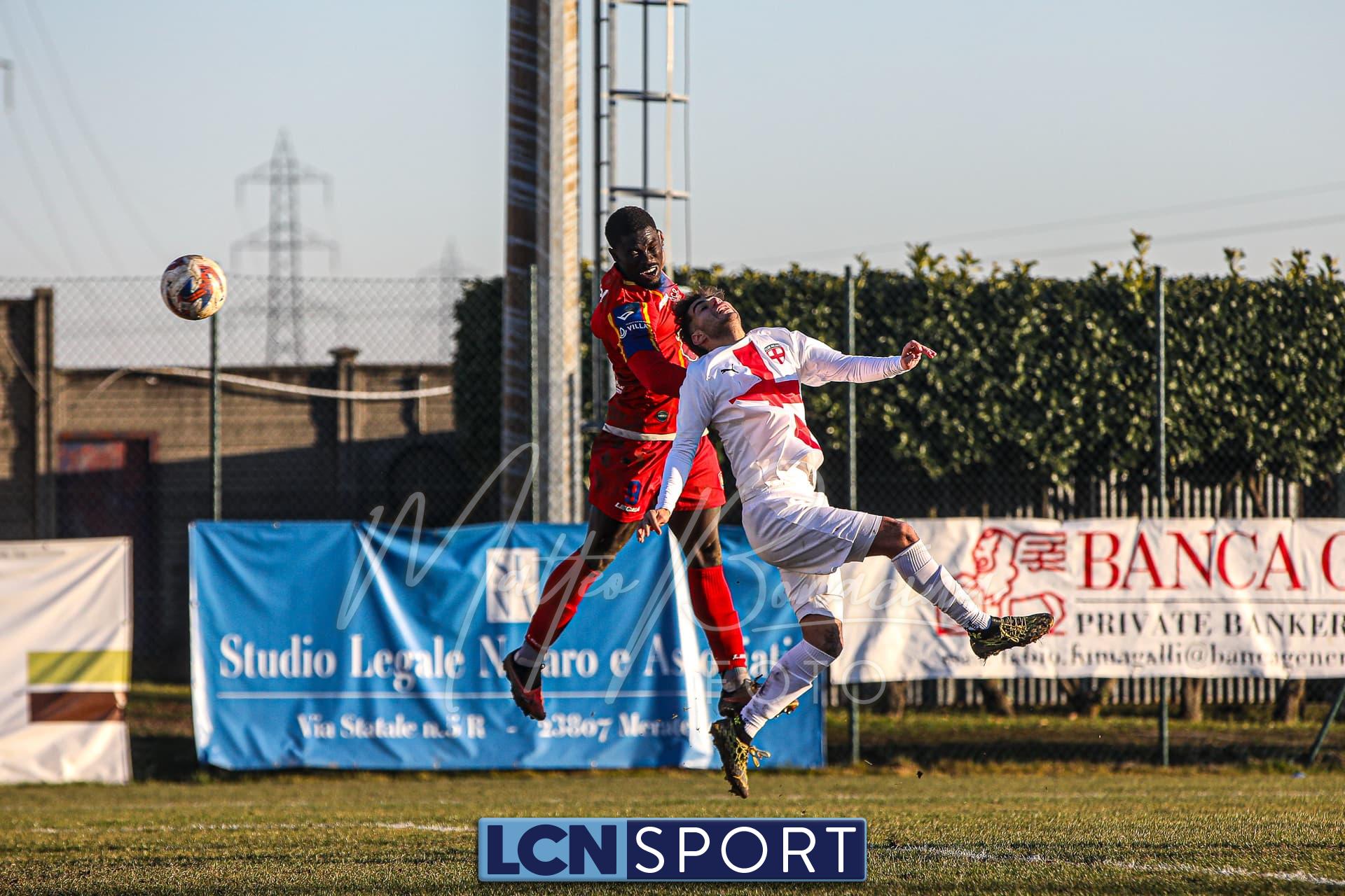 Anche nella ripresa gli ospiti hanno provato ad ostacolare con caparbietà difensiva la più agguerrita Casatese Merate che ha sprecato pure nella seconda metà. Goffi insiste sulla sinistra, ma non riesce a scardinare la retroguardia avversaria. Ancora Casatese: l’azione parte dai piedi di Corno, poi la palla arriva ad Isella ed infine la conclusione lecchese finisce tra le braccia di Stucchi. Foschiani tenta la botta dalla distanza, ma la sfera termina sopra la traversa. Viene annullata per fuorigioco una rete al Club Milano al 53’. Entra Diana ed esce Doria. Diana la crossa dalla sinistra e Gningue realizza la zuccata, ma la palla termina a lato. Diana avanza sulla sinistra, poi Goffi quasi provoca l’autogol avversario, ma Stucchi è attento. Viene cambiato Bolis, che ha ben figurato in questa partita, per far posto a Mendola. Tiro-cross della formazione casalinga dalla sinistra che impensierisce Stucchi che è costretto all’intervento. Punizione della squadra di Pero sulla quale giunge la conclusione dalla distanza che si rivela centrale. Segue il tiro in porta crociato sul quale Bragotto non si fa sorprendere. Colpo di testa della Casatese in area che viene neutralizzato in qualche modo da Stucchi. Doppio muro difensivo biancorosso sul quale si infrangono i tentativi offensivi dei padroni di casa. Rosso per Rigo che lascia in 10 i suoi. Tre minuti di recupero. Gningue ha la palla per il vantaggio, ma la sciupa da pochi passi. Espulsione anche per la Casatese con Losa. Finisce 0-0 senza l’emozione del gol con entrambe le squadre che si devono accontentare di un punto a testa: secondo segno X di fila e quarto risultato utile per i rossoblù che, con 35 punti alla pari con il Sant’Angelo, si collocano a -3 dai playoff, mentre i milanesi, che hanno totalizzato quattro vittorie consecutive prima di questa sfida, sono a +4 dai playout con 26 punti. Ora la Casatese attende la prestigiosa trasferta con la capolista Ospitaletto.