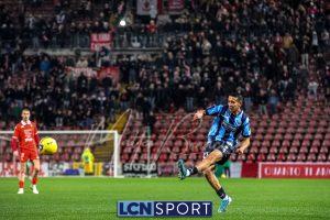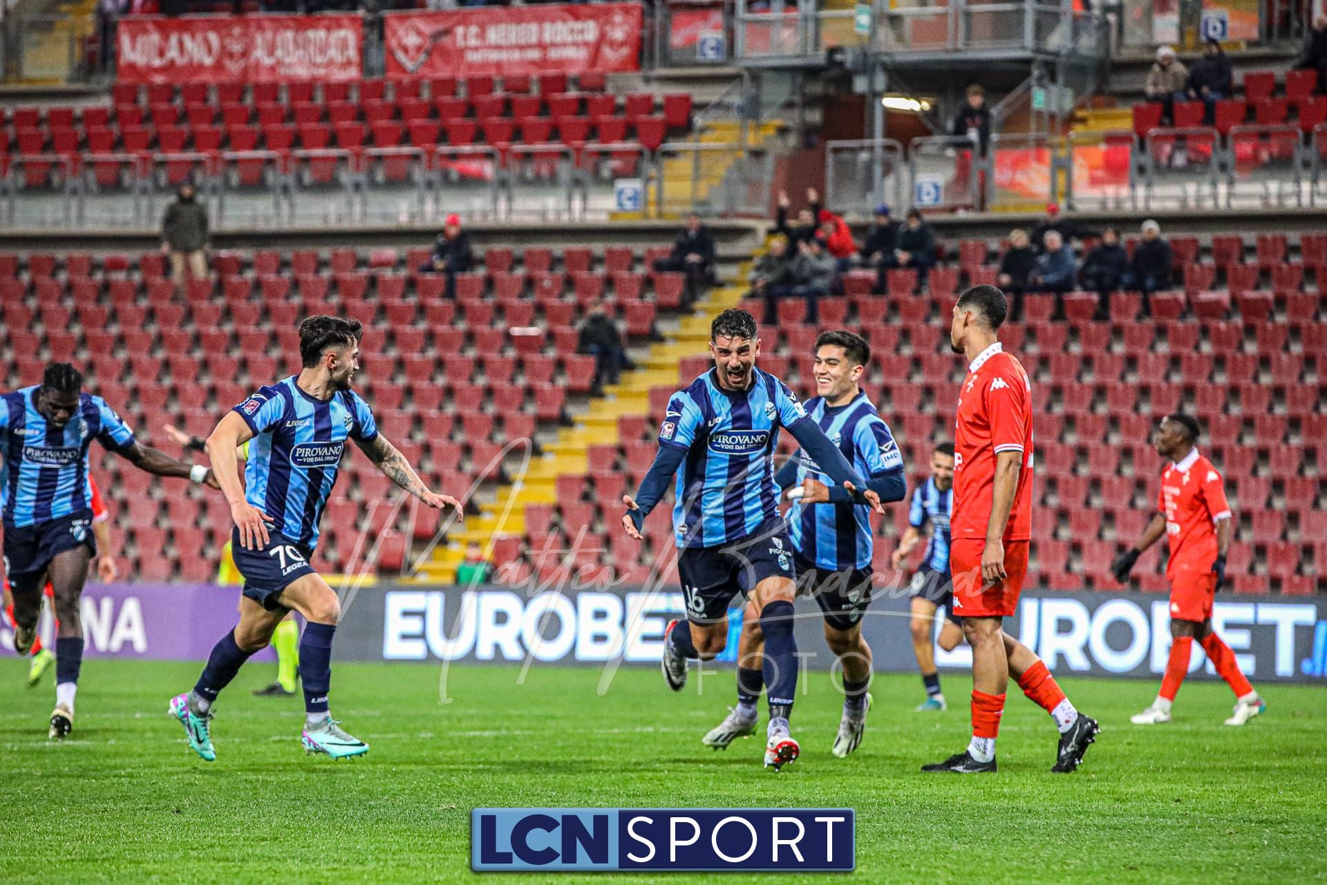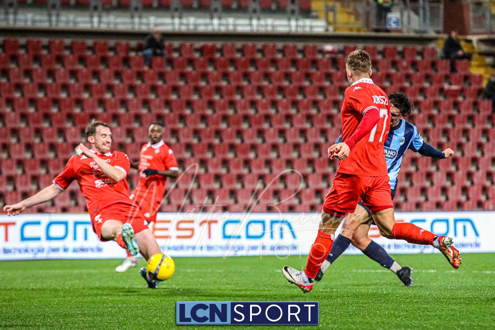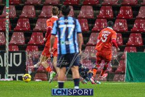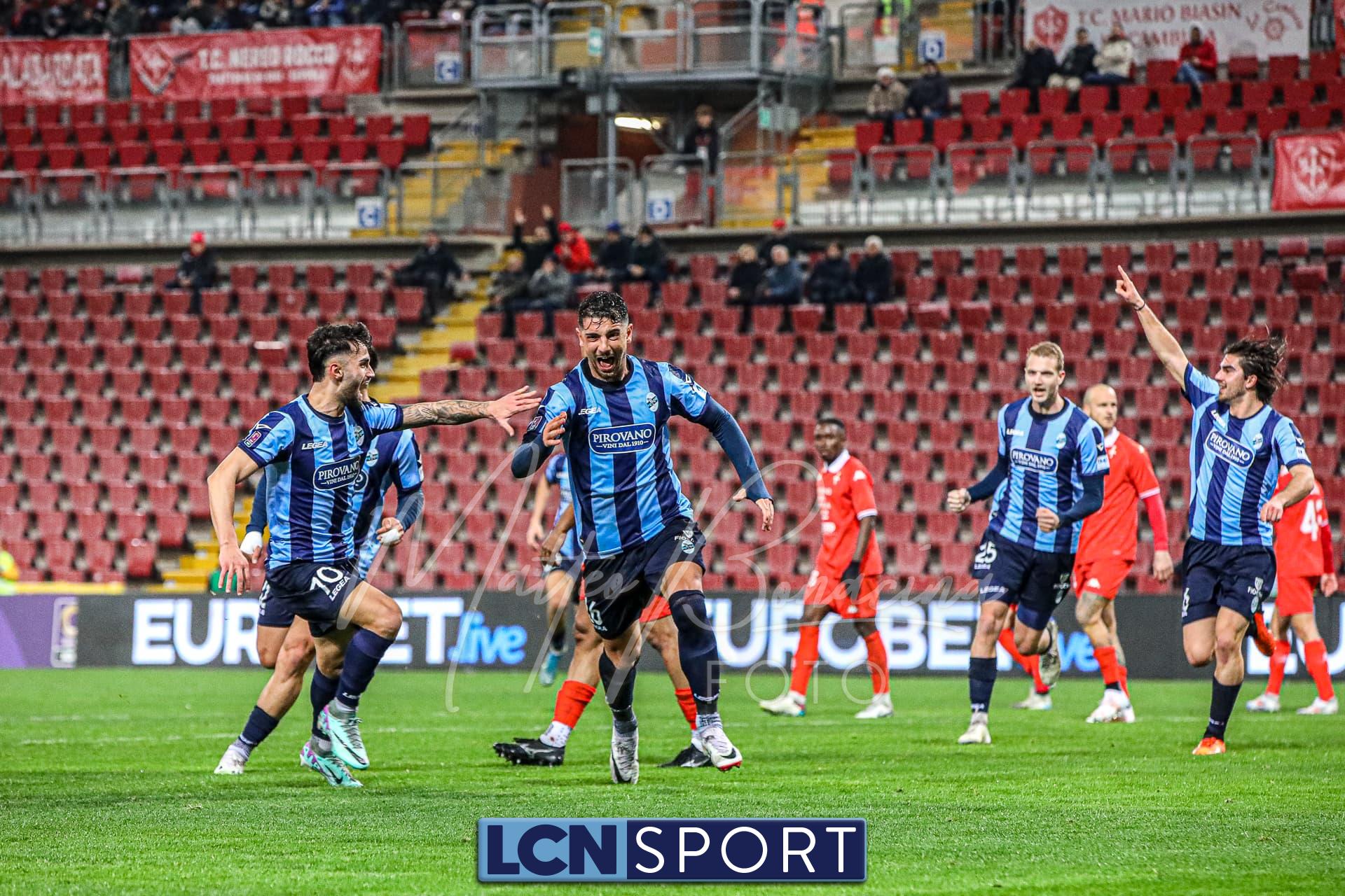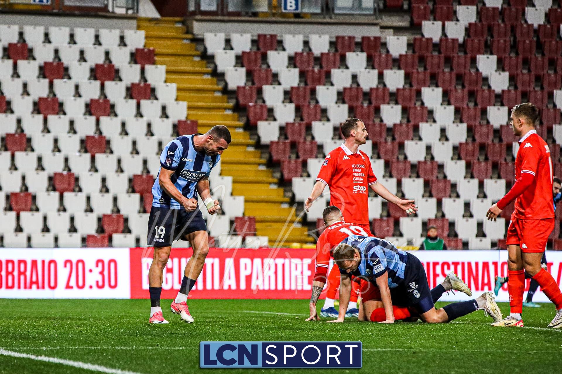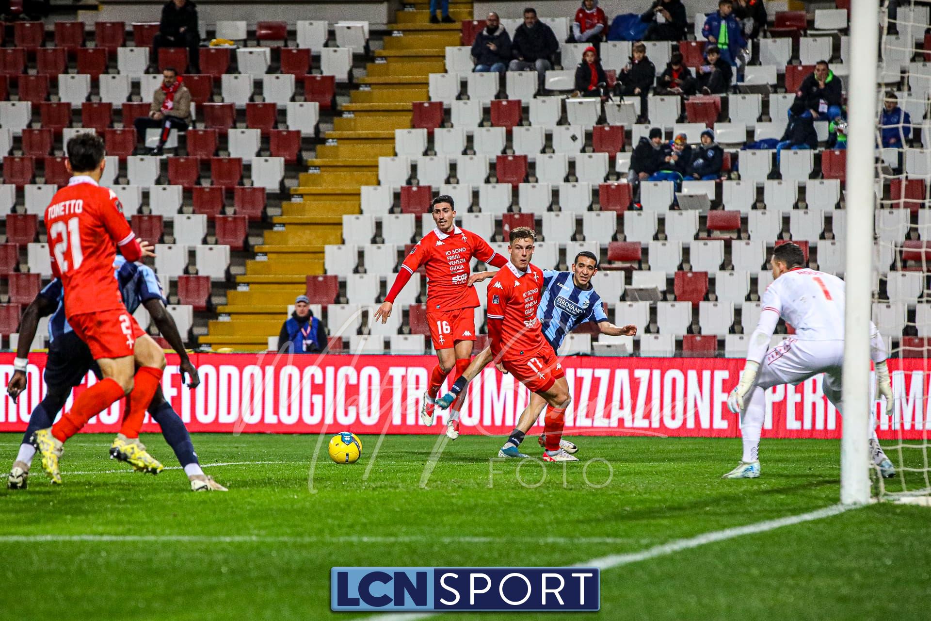 Il Lecco sembra crederci solo nel finale e all’89’ Ferrini inventa il gol del pareggio stoppando un pallone ributtato fuori dalla difesa e calciando subito col mancino: tiro all’angolino imparabile per Roos.