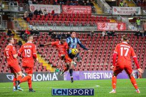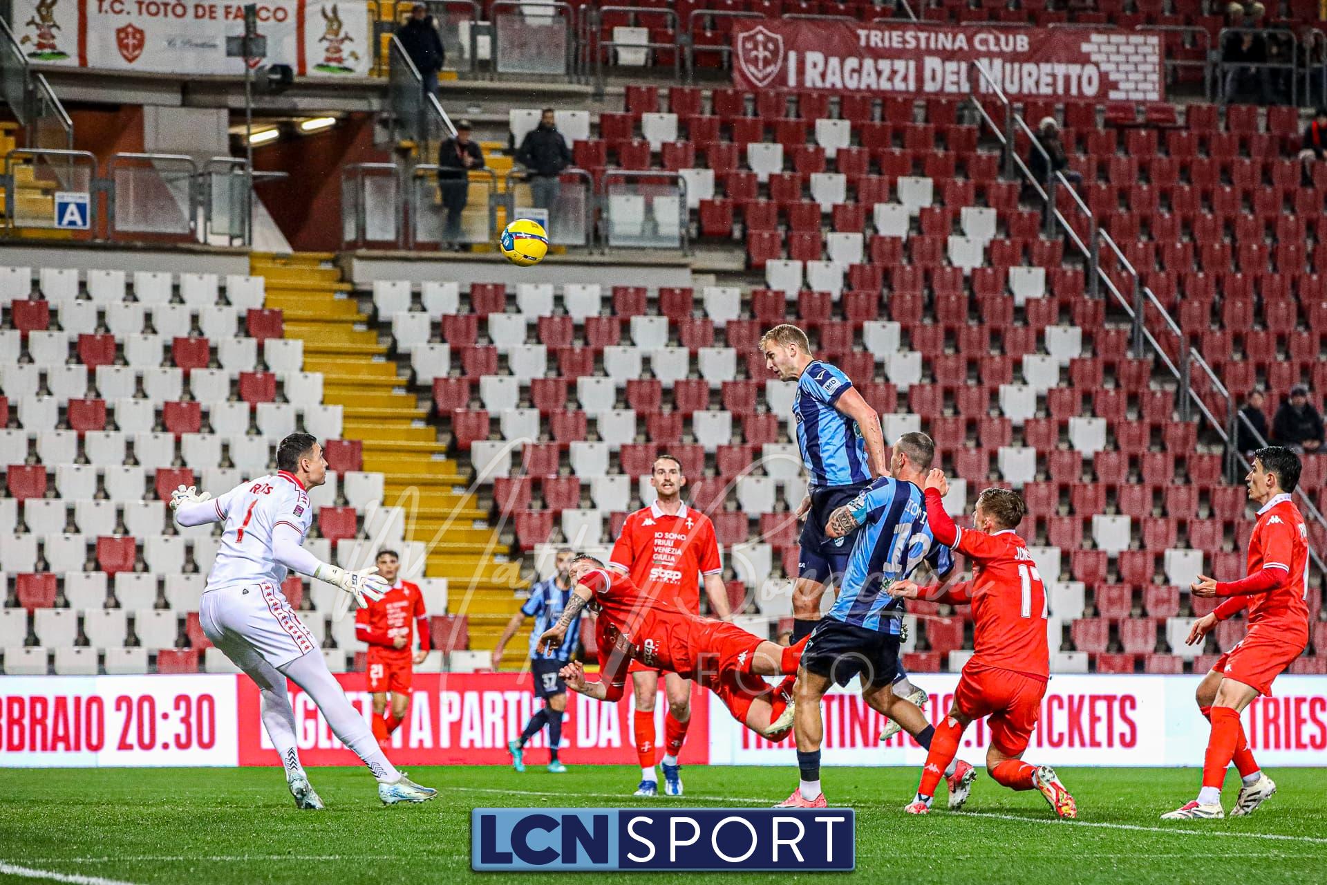 Kritta calcia al 66′ ma fiacco, Roos blocca con facilità. Ci prova Olivieri al 70′, il tiro è fuori misura. Al 78′ dentro anche Galeandro per Marino. Subito la Triestina spreca una ghiotta occasione con Fiordilino che calcia al volo sull’esterno della rete. Il guizzo bluceleste all’84’ proprio sulla testa di Galeandro, bene imbeccato in area da Kritta: Roos si supera sotto la traversa.