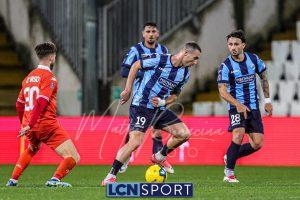 Lecco (3-5-2): Furlan; Martic, Marrone, Ferrini; Grassini (dal 23′ s.t. Di Dio), Marino (dal 33′ s.t. Galeandro), Di Gesù (dal 23′ s.t. Frigerio), Ionita, Kritta; Mendoza (dal 1′ st Sene), Sipos (dal 46′ s.t. Battistini) (Fall, Dalmasso, Galeandro, Stanga, Tordini, Cavallini, Galli, Polito). All. Volpe.