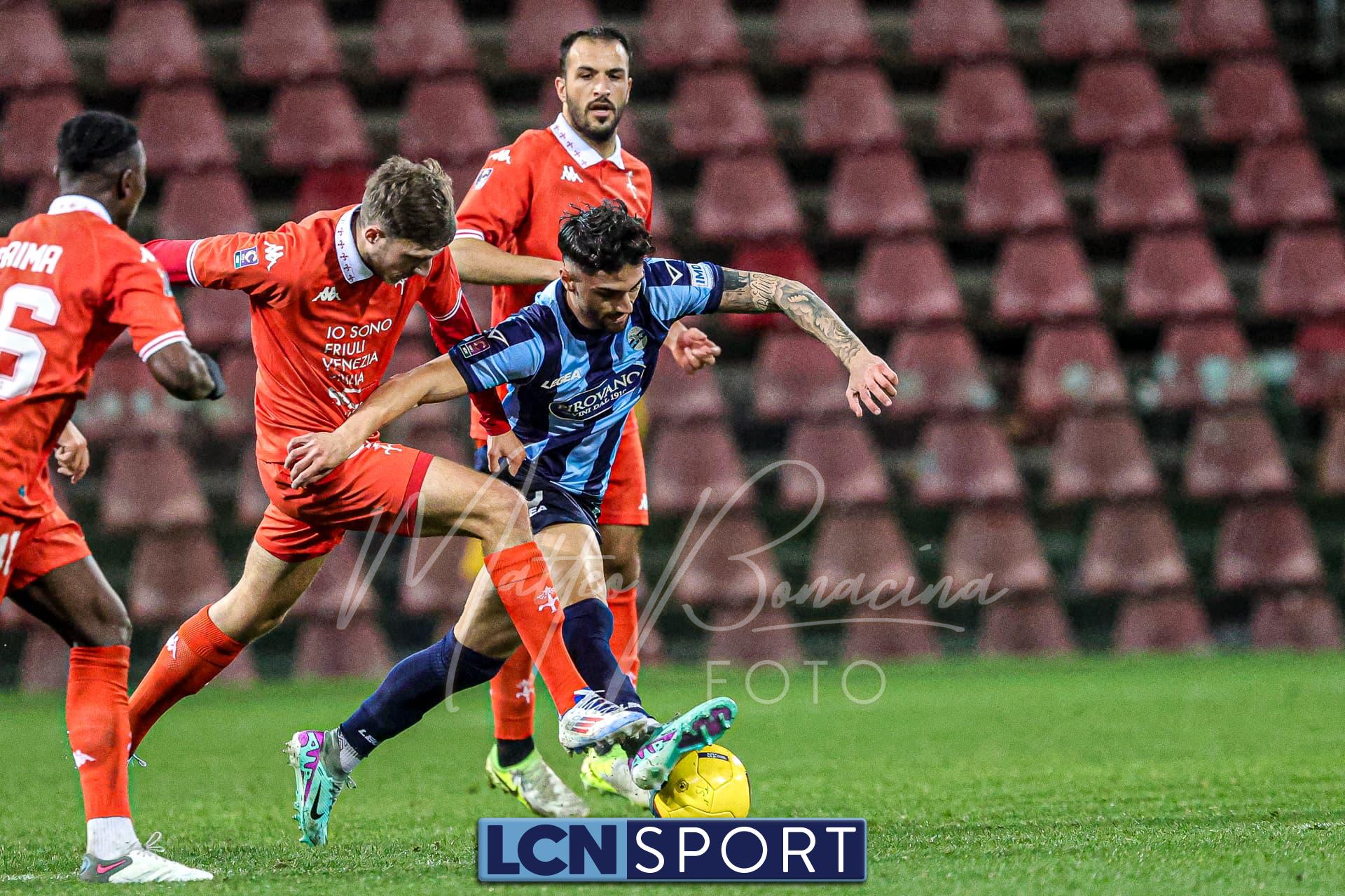Ci prova al 24′ Mendoza che scende a sinistra, con un po’ di campo, per servire Di Gesù che calcia ma viene chiuso. Al 32′ la Triestina va in vantaggio: D’Urso serve Correia che prende sul tempo la difesa e punta la porta, infilando Furlan in diagonale. Al 40′ Vertainen lancia in verticale Olivieri che, a tu per tu con Furlan, non aggancia di un attimo.