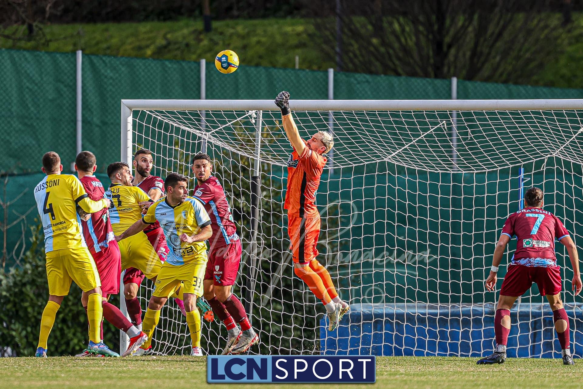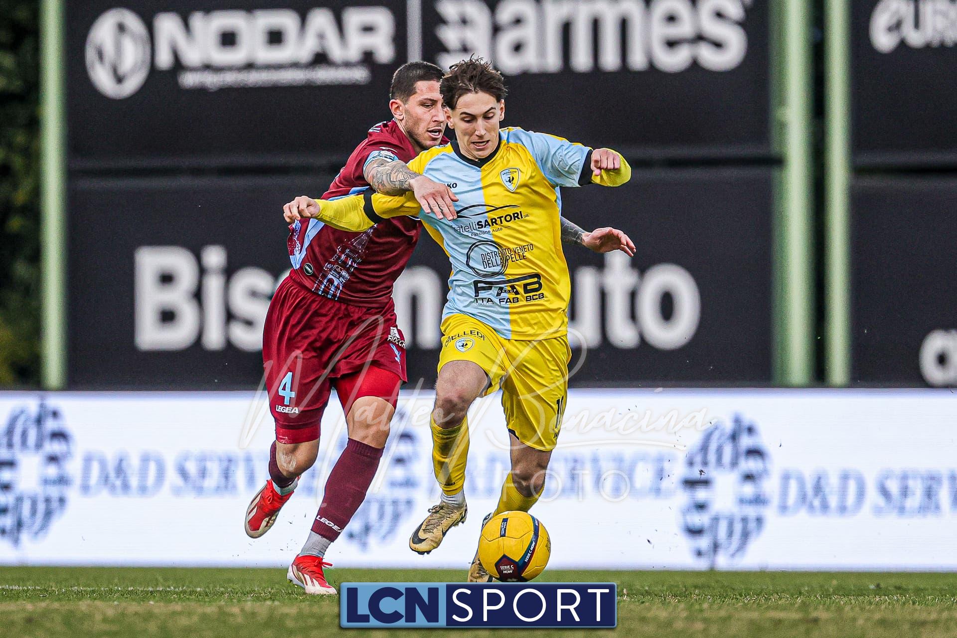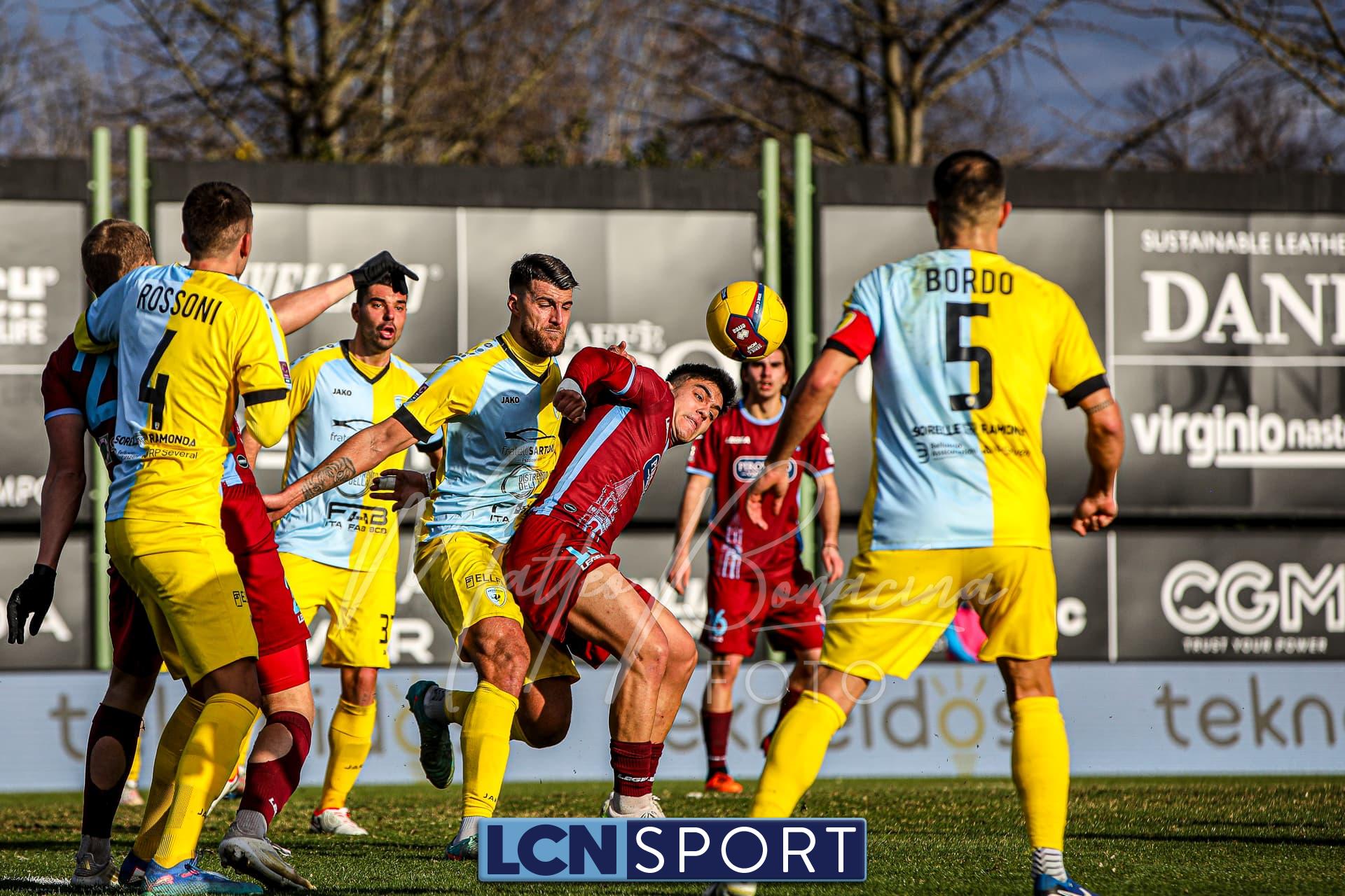 Il Lecco cerca di sfruttare l’uomo in più e chiude gli avversari negli ultimi venticinque metri. Ferrini ci prova dai venti metri con un gran mancino, Boseggia respinge e non trattiene, ma Galeandro non riesce ad approfittare del tap-in.