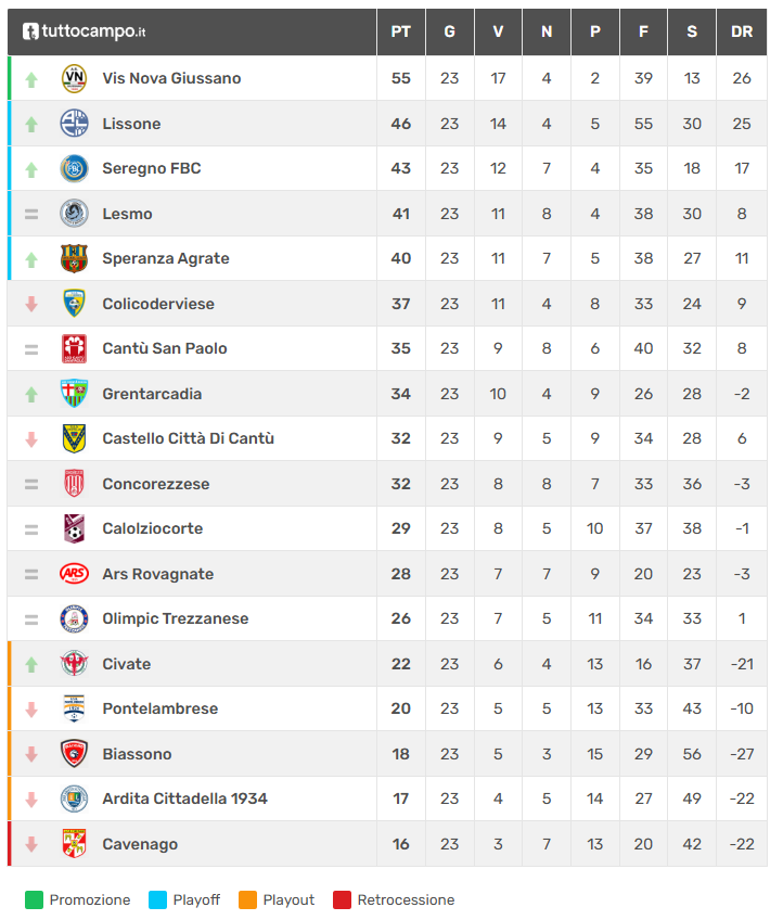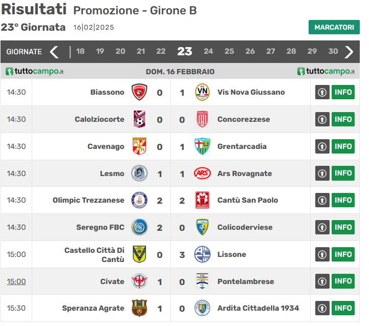 Di seguito vengono presentati ultimi esiti e graduatoria del girone B di Promozione lombarda: