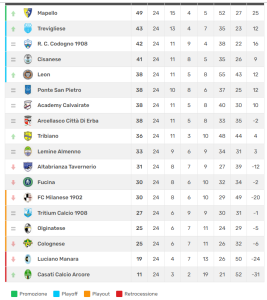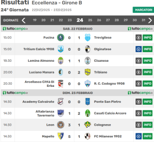 Di seguito vengono presentati la graduatoria e gli ultimi esiti del girone B di Eccellenza lombarda: