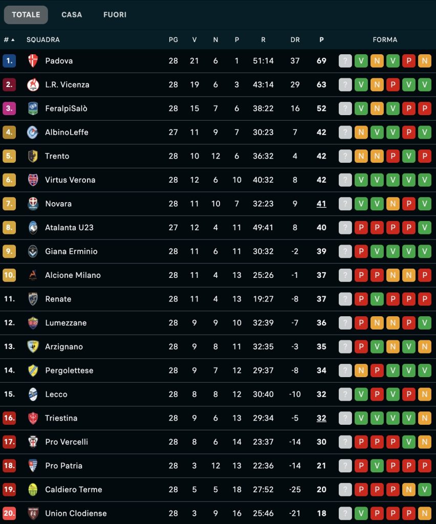 Troppa grazia, si direbbe. Il 28° turno del girone A di Serie C – che si chiude lunedì sera con Atalanta U23-Albinoleffe – è stato favorevole come poche altre volte alla Calcio Lecco 1912: il rimontone compiuto ai danni della Pro Patria ha permesso di mettere undici punti di distanza rispetto ai diretti avversari, fare un balzo fuori dalla zona play out e aggiungere ulteriore pressione addosso alla Pro Vercelli in vista del match poi perso domenica (2-0) sul campo dell’Union Clodiense ancora fanalino di coda. In più, i blucelesti si sono riattaccati alla pancia del gruppo dopo le sconfitte in serie rimediate dalle compagini che si trovano in quella fascia del raggruppamento. A questo va sommata la ventilata penalizzazione che dovrebbe colpire a breve la Triestina per delle irregolarità nel pagamento dell’Irpef e dell’Iva. Difficile sperare in una somma di fattori migliore rispetto a quelli appena elencati, oggettivamente, anche senza tenere conto delle relative conseguenze umorali che tutta questa sequenza potrebbe di eventi potrebbe avere nelle varie case. Senza sbilanciarsi troppo, potrebbe finalmente essere arrivato un segnale nitido quando la stagione regolare è entrata nella fase più calda e decisiva.