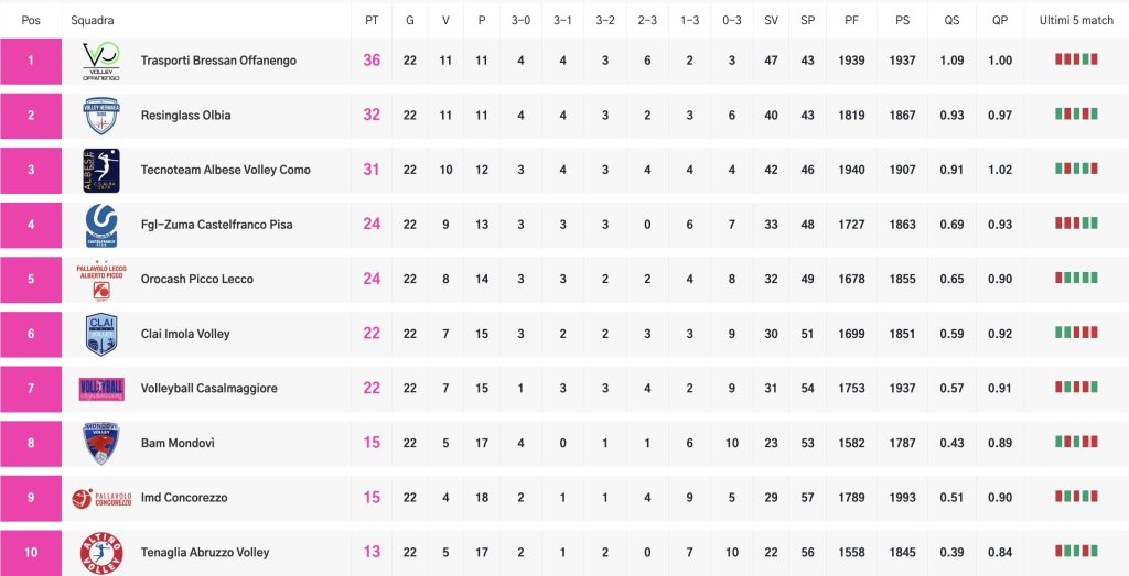 La partita non è iniziata nel migliore dei modi per le padrone di casa, che hanno faticato a entrare in ritmo nel primo set. Le lecchesi sono apparse contratte e poco efficaci, subendo l’iniziativa delle ospiti che hanno chiuso agevolmente il parziale per 18-25. La reazione della Orocash è arrivata puntuale nel secondo set, con un avvio decisamente più convincente che ha portato le biancorosse sul 6-2. Le ragazze di coach Milano hanno gestito con autorità il vantaggio (11-7), cambiando completamente l’impostazione di gioco rispetto al set precedente. Nel finale, nonostante un tentativo di rimonta di Concorrezzo (22-19), Picco ha mantenuto la lucidità necessaria per chiudere 25-22 e pareggiare i conti.