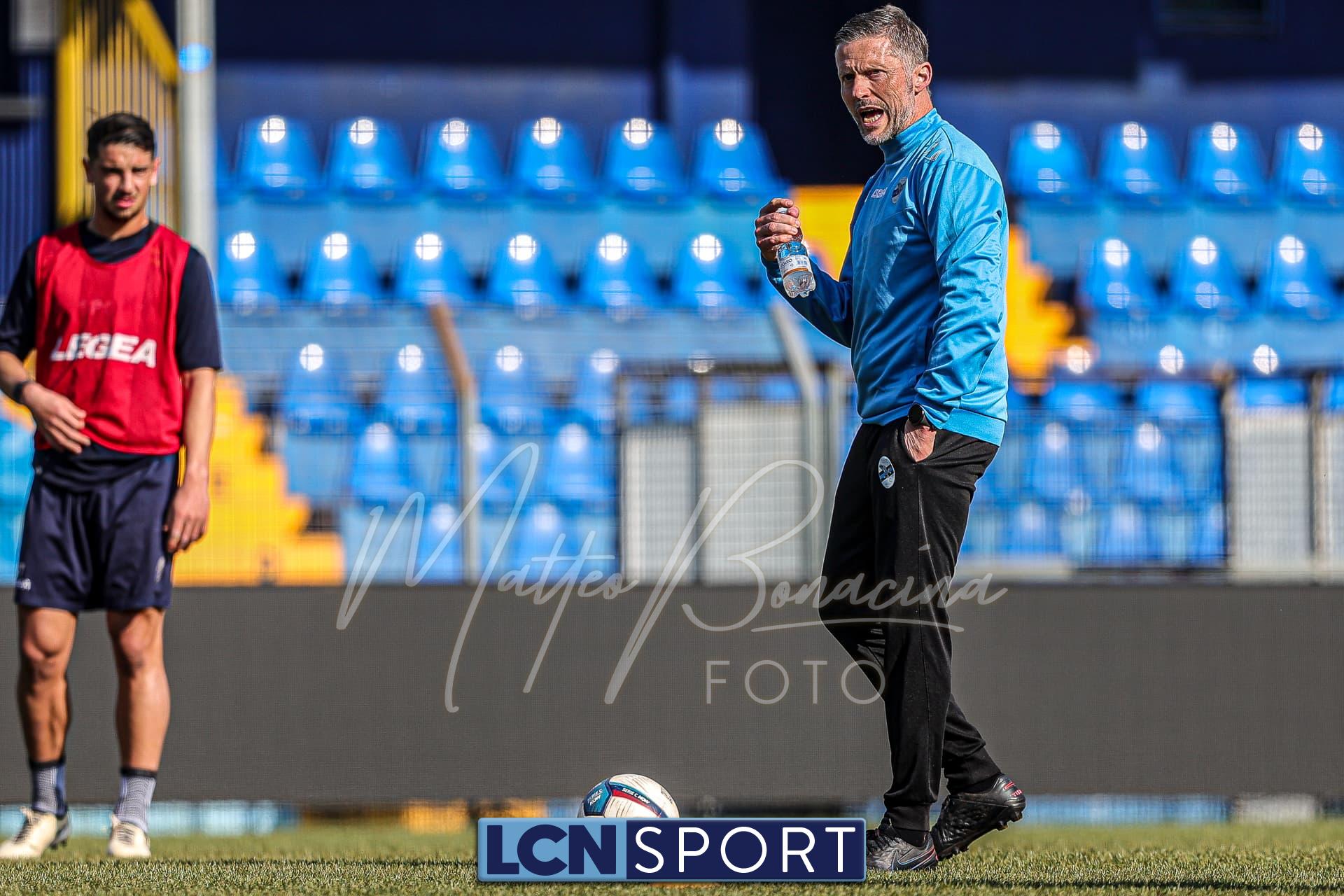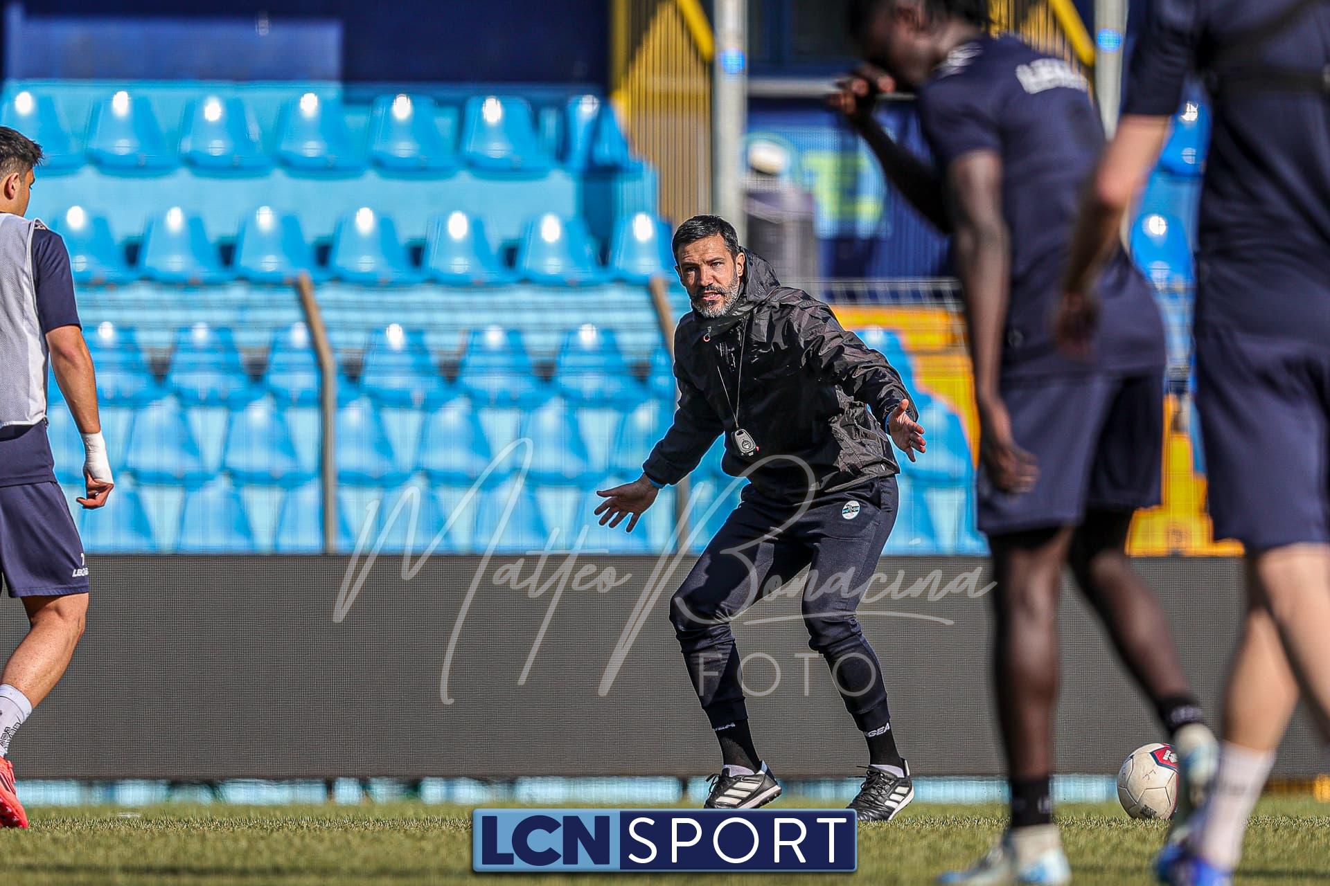 Un clima mite, perfetto per allenarsi, ha accolto il Lecco nel giorno che ha dato il via alla preparazione in vista della sfida di domenica contro la FeralpiSalò. Seduta d’allenamento intensa dopo due giorni di riposo, guidata da mister Federico Valente e dal vice Nicolò Cherubin “registrata” dagli occhi umani ma pure da quelli elettronici gestiti dal collaboratore Diego Montecchio. La squadra bluceleste ha articolato la sessione di preparazione attraverso diverse fasi ben definite. Si è partiti con riscaldamento e attivazione muscolare, propedeutici alle successive esercitazioni. Successivamente i giocatori si sono cimentati in esercitazione di possesso palla a tre squadre in spazi molto stretti, attività che favorisce la circolazione del pallone e la lettura delle dinamiche di gioco. Ampio spazio è stato poi dedicato alla tattica, con mister Valente che – non risparmiando urla e sproni ai suoi giocatori – ha lavorato su schemi e posizionamenti in vista dell’impegnativo confronto con i gardesani, terza forza del girone A. La seduta si è conclusa con una partitella a tema, momento importante per verificare l’assimilazione dei concetti provati e mantenere alta la tensione agonistica.