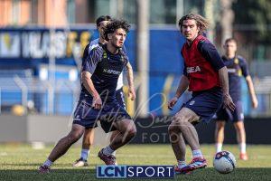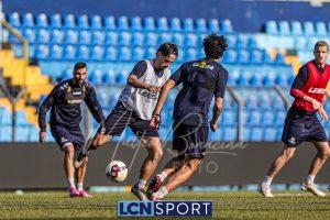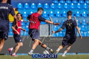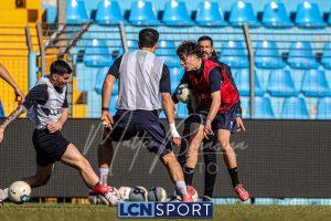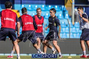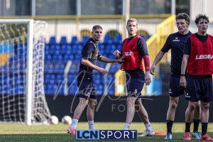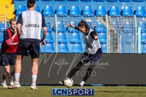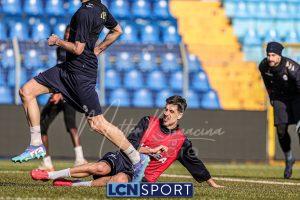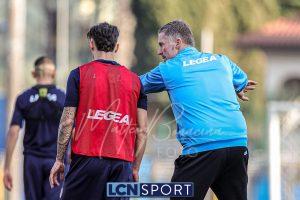 Un clima mite, perfetto per allenarsi, ha accolto il Lecco nel giorno che ha dato il via alla preparazione in vista della sfida di domenica contro la FeralpiSalò. Seduta d’allenamento intensa dopo due giorni di riposo, guidata da mister Federico Valente e dal vice Nicolò Cherubin “registrata” dagli occhi umani ma pure da quelli elettronici gestiti dal collaboratore Diego Montecchio. La squadra bluceleste ha articolato la sessione di preparazione attraverso diverse fasi ben definite. Si è partiti con riscaldamento e attivazione muscolare, propedeutici alle successive esercitazioni. Successivamente i giocatori si sono cimentati in esercitazione di possesso palla a tre squadre in spazi molto stretti, attività che favorisce la circolazione del pallone e la lettura delle dinamiche di gioco. Ampio spazio è stato poi dedicato alla tattica, con mister Valente che – non risparmiando urla e sproni ai suoi giocatori – ha lavorato su schemi e posizionamenti in vista dell’impegnativo confronto con i gardesani, terza forza del girone A. La seduta si è conclusa con una partitella a tema, momento importante per verificare l’assimilazione dei concetti provati e mantenere alta la tensione agonistica.