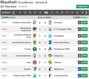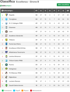 Risultati e classifica del girone B di Eccellenza lombarda