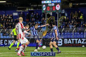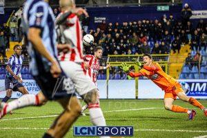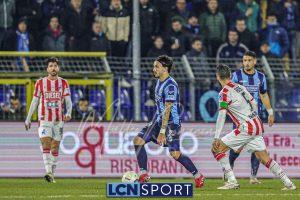 Il gol ospite arriva un po’ a freddo al 35′: bella azione a destra di Zonta, palla messa in area, colpo di testa schiacciato di Della Latta con il pallone che salta i difensori blucelesti, Morra si avventa anticipando Ferrari e Marrone (che inizialmente sembra averla toccata) a spiazzare Furlan.