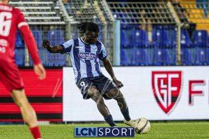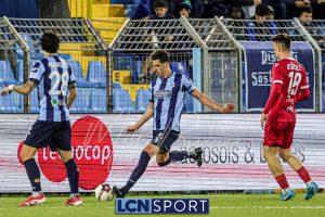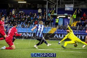 Al 21′, dal nulla, il vantaggio del Lecco: lancio lunghissimo dalla linea difensiva di Marrone sulla corsa di Sipos che non stoppa benissimo ma salta comunque Ferri sul primo controllo e poi batte Mangiapoco col mancino. Dodicesimo centro stagionale per il centravanti bluceleste.