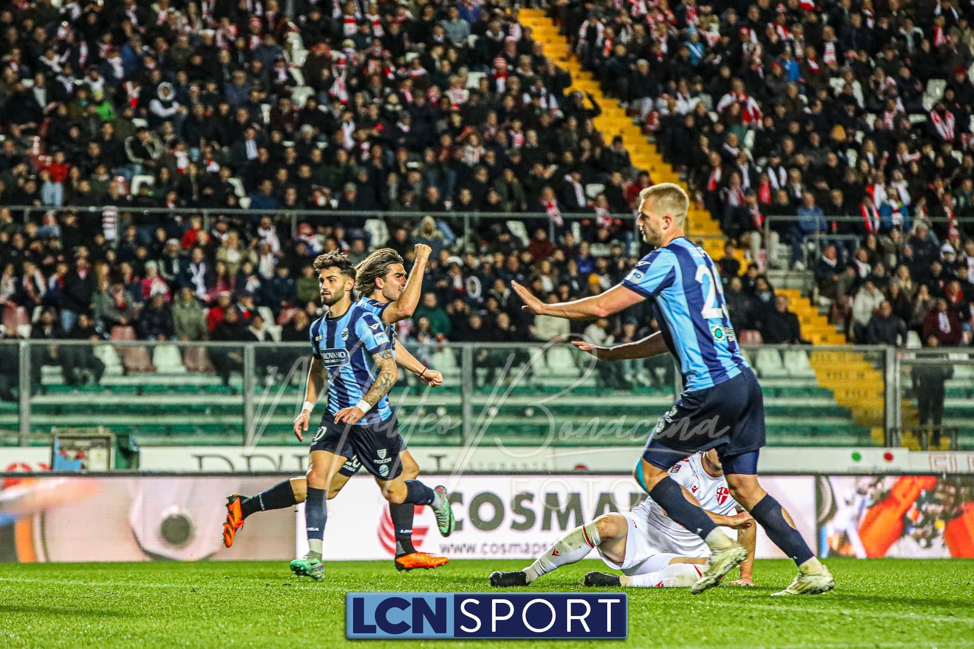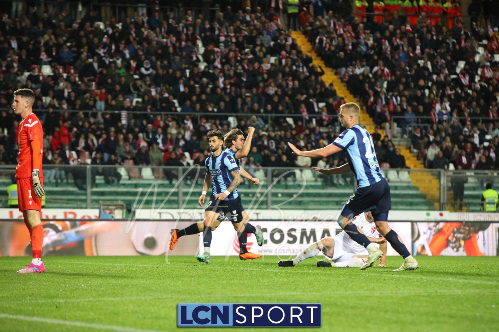 Subito chance con la torre di Kristoffersen per Sipos, che si aggiusta il pallone ma calcia alle stelle. Il Lecco accorcia al 77′ su azione laboriosa, nata dal cross di Cavallini dopo lo splendido uno-due con Zanellato; prima respinta del portiere, Di Dio calcia e viene murato sulla linea, Frigerio sulla seconda palla riesce a insaccare con una conclusione sporchissima che viene deviata da Kristoffersen (a cui è poi attribuito il gol).