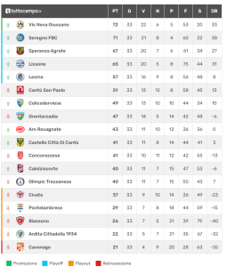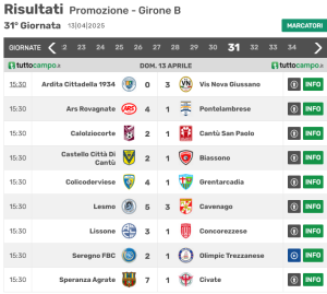 Risultati e classifica del girone B di Promozione lombarda