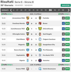 Di seguito vengono presentati graduatoria e gli ultimi esiti del girone B di Serie D: