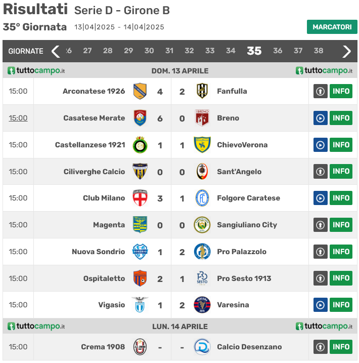 Nell’ultimo turno del girone B di Serie D, la Casatese Merate fa un casalingo e rotondo +3 con sei reti segnate al Breno raggiungendo la seconda piazza della classifica