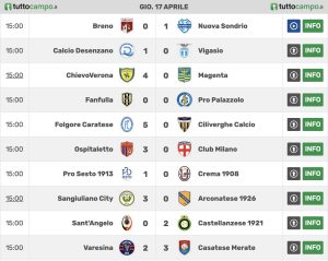 Marcatori: 29′ pt F. Ferrante (C), 17′ st E. Gningue (C), 34′ st F. Mapelli (V), 40′ st Rig. M. Bertoli (V), 41′ st A. Doria (C)