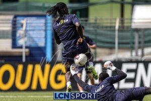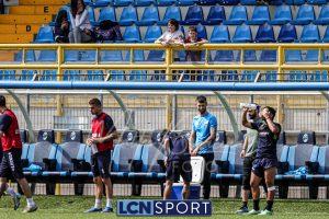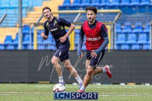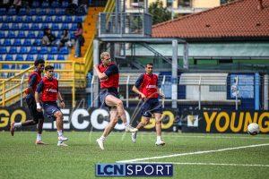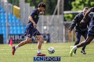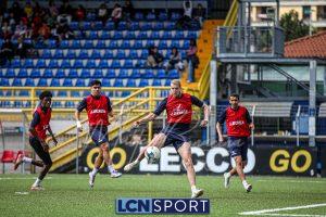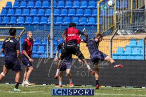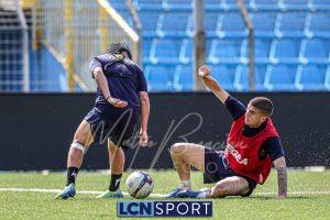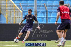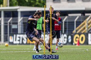 La seduta ha evidenziato alcune assenze significative: Frigerio, ha rimediato una lesione al flessore destro che necessiterà di ulteriori esami e di verosimili 50 giorni di recupero – sarà pronto per il raduno estivo -, Battistini (squalificato), oltre a Ferrini e Di Dio; quasi tutti, eccetto Ferrini, hanno lavorato in palestra. Assenze che aprono il fronte a una moderata emergenza in difesa. Da segnalare la presenza di diversi giovani della Primavera aggregati alla prima squadra: Anastasini, Di Bitonto, Papotti, Mihali e Tondi, che domenica alle 16 sfideranno la Pro Patria ai play off.