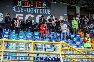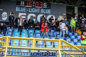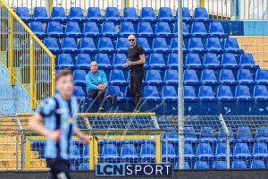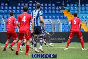 Nonostante le numerose incursioni nell’area avversaria – presidiata da una retroguardia notoriamente molto solida -, i ragazzi di Mazzoleni non riescono a capitalizzare. La frustrazione cresce e nel finale arriva anche l’espulsione di Papotti per doppia ammonizione dopo che il regista ha reso impossibile la battuta di un calcio di punizione a centrocampo. La Pro Patria sfiora il raddoppio negli ultimi istanti, ma Constant compie un vero miracolo su Colombo, evitando che il passivo diventi più pesante per i blucelesti.