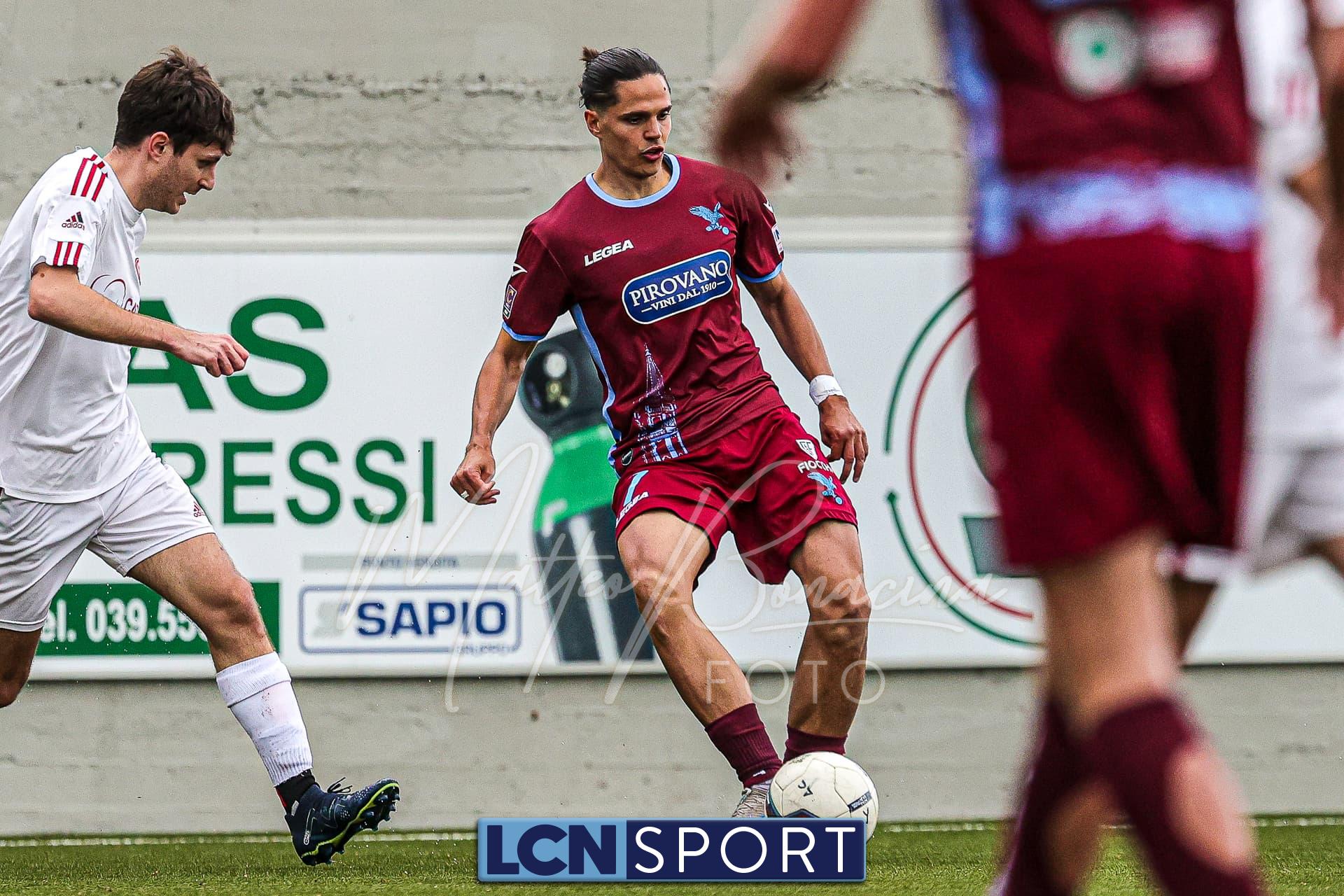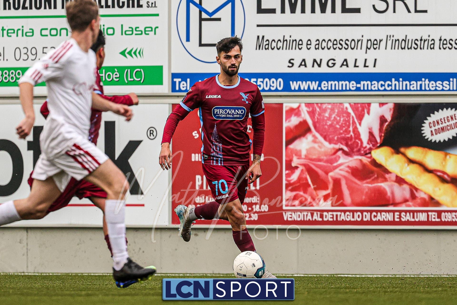 Il Rovagnate si è fatto vedere al 32′ con Palvarini che, dopo essere converso da destra verso il centro, ha concluso verso il secondo palo trovando l’opposizione di Di Bitonto. Al 37′, ancora Lecco pericoloso con Grassini che ha servito Sipos, il cui tiro è stato murato dalla difesa; sulla respinta Mihali ha sparato fuori misura con il sinistro. Il vantaggio dei blucelesti è arrivato allo scadere del primo tempo: Di Gesù ha battuto una punizione dal limite, Soldo ha respinto il tiro rasoterra e Sipos, con un tempestivo tap-in, ha siglato lo 0-1 sull’ultima palla della prima frazione.