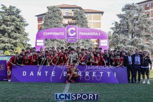 Al triplice fischio dell’arbitro Striamo è festa grande per il Catanzaro che conquista il 57° Trofeo Dante Berretti al termine di una finale spettacolare. I giallorossi calabresi, arrivati alla fase finale da primi classificati del girone B, alzano al cielo la coppa allo stadio Mirabello davanti alle telecamere. Per il Lecco resta l’amarezza di una sconfitta bruciante, ma anche la consapevolezza di aver disputato una partita di grande intensità e qualità fino all’ultimo minuto. I blucelesti, partiti dall’ultimo piazzamento utile per i playoff come quinti del girone A, chiudono comunque una stagione straordinaria che li ha visti conquistare la storica promozione in Primavera 2 attraverso una cavalcata indimenticabile che ha visto le eliminazioni di Carrarese, Pro Patria e Mantova.